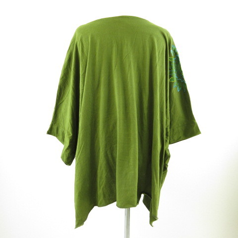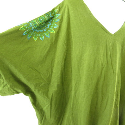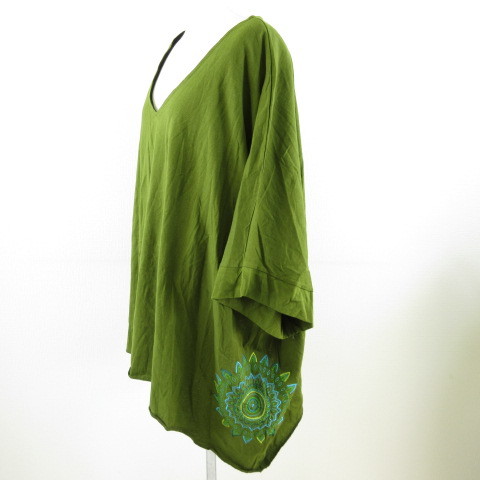 マタハリ matahari カットソー 七分袖 Vネック 刺繍 カーキ 緑 *T254 レディース