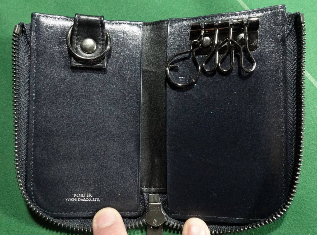 □ポーター PLUME 牛キップ レザー L字ジッパー スマートキー対応 4連 キーケース ダークネイビー 美品!!!□
