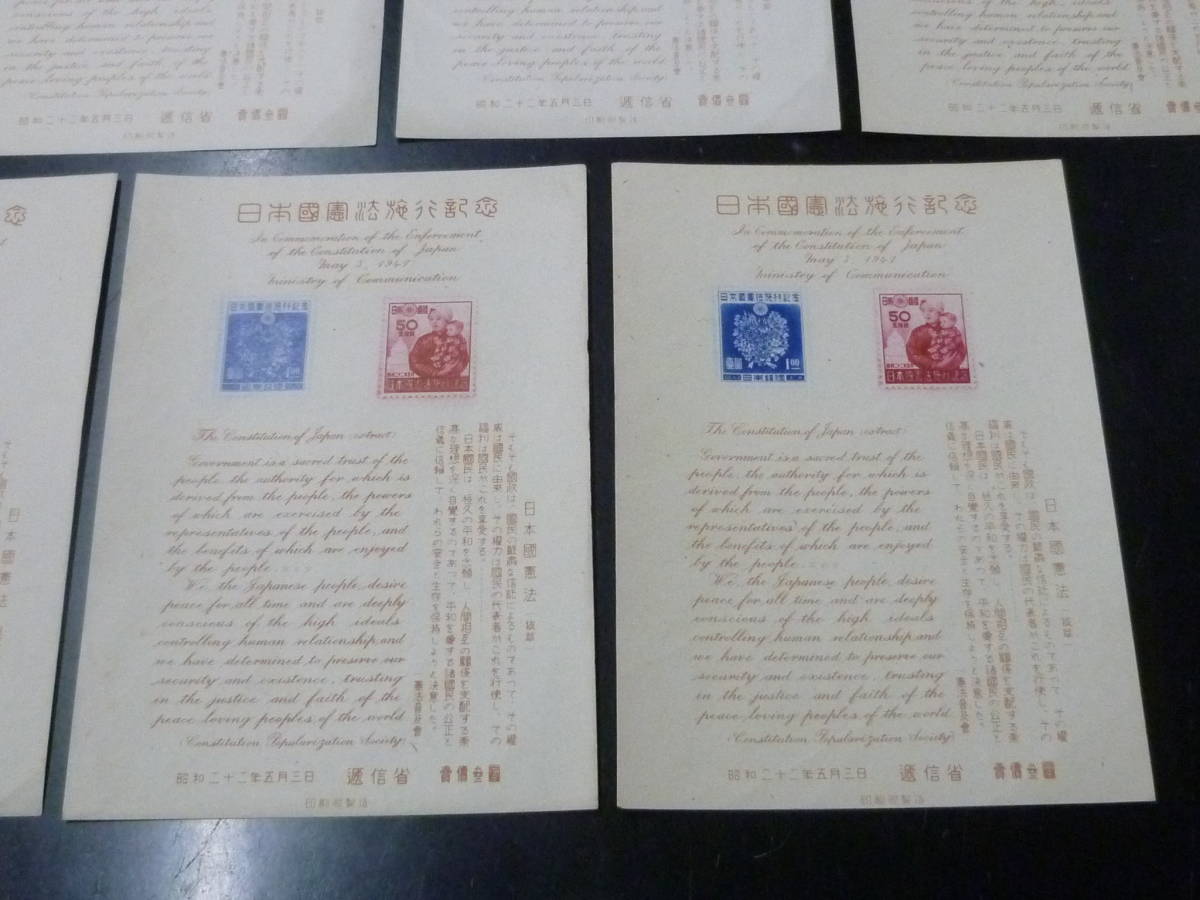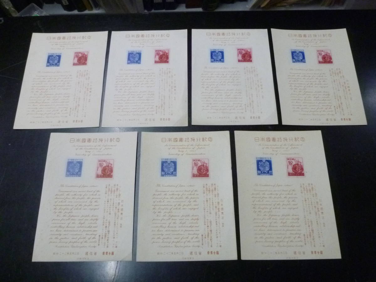 24 A 日本切手 記念 1947年 記104 日本国憲法 小型シート 計7枚 未使用NH・折スジ有 【型価 12,600円】