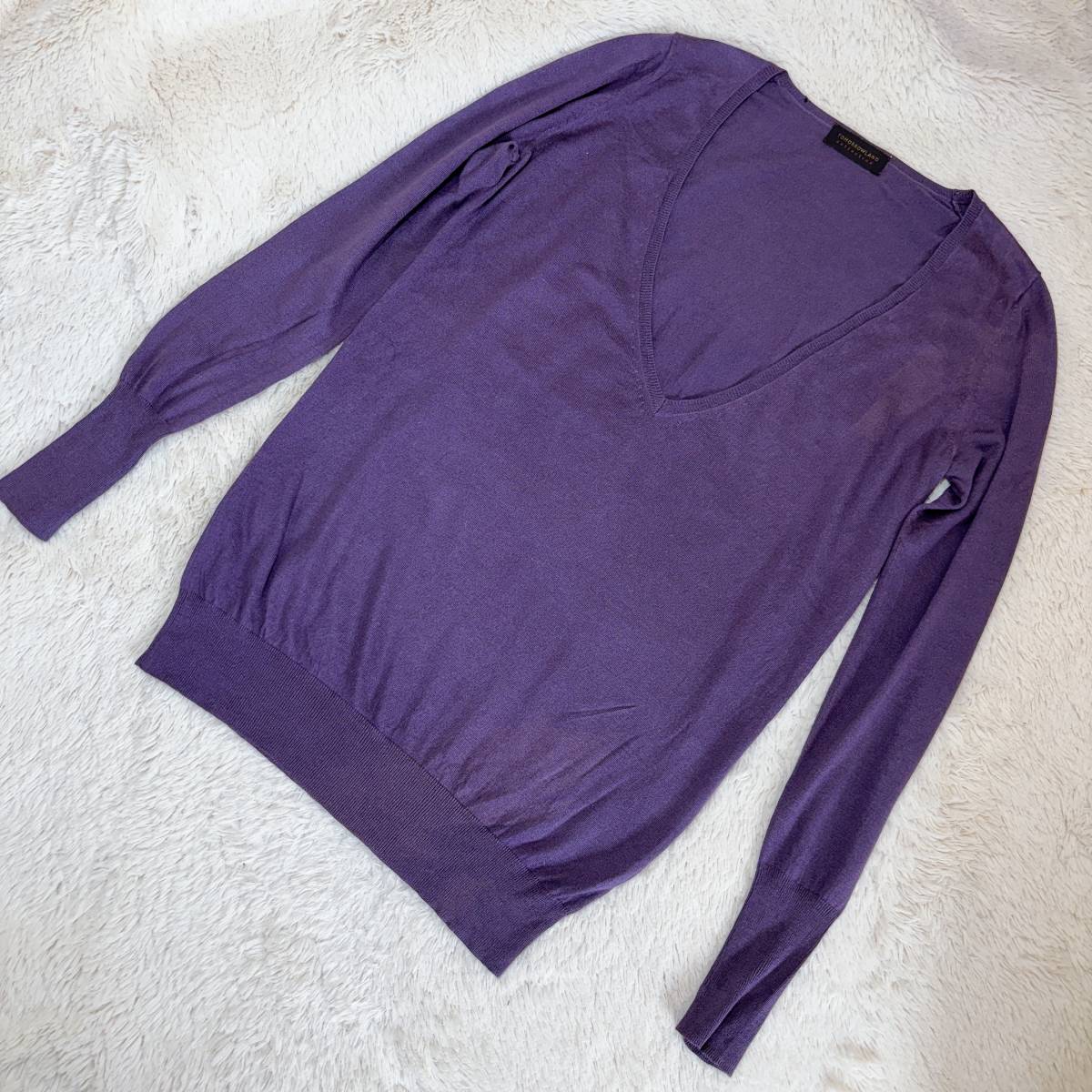 | B682■トゥモローランドCollection★紫/シルク&カシミヤ★ロング丈Vニット■38 | ||||||||||||||||||||