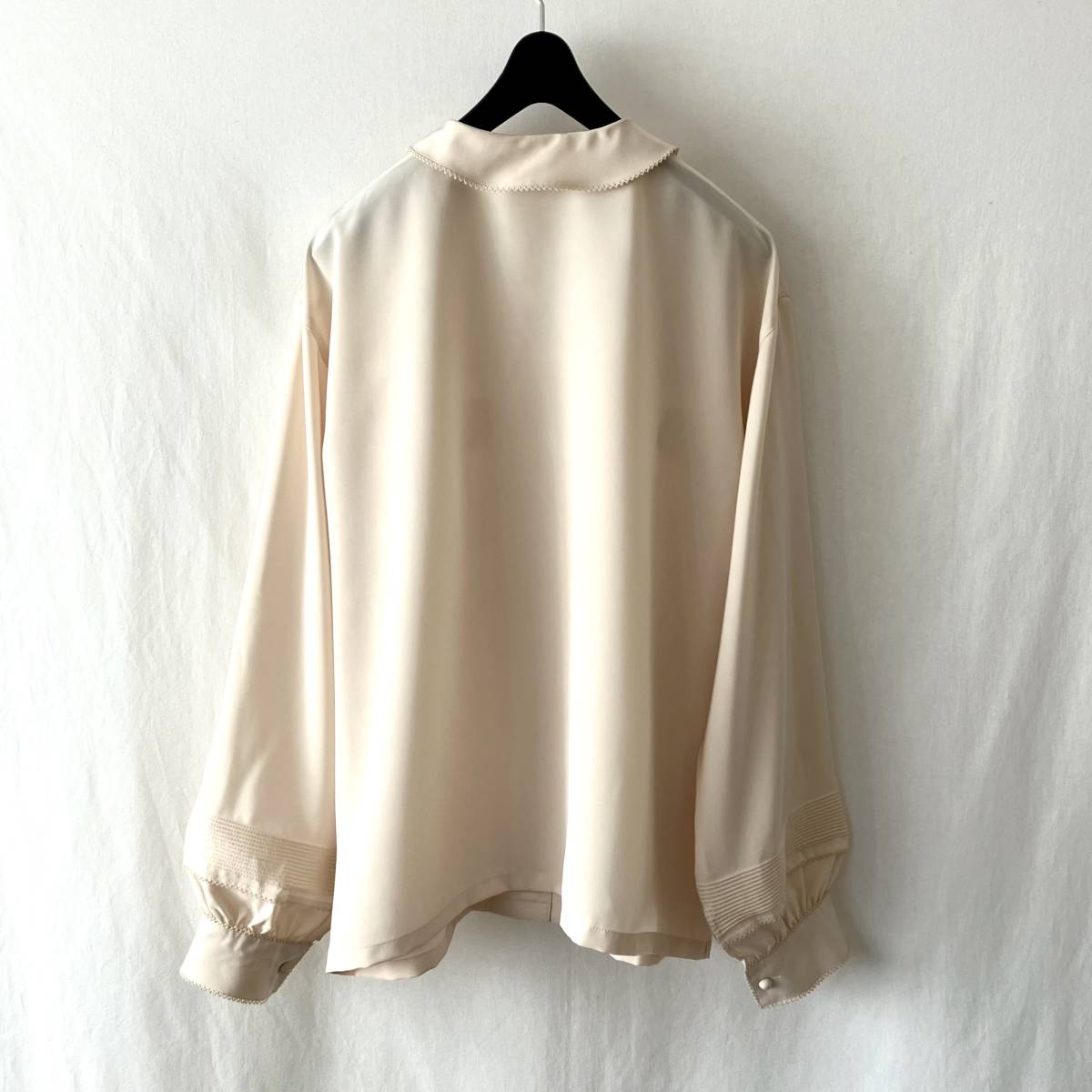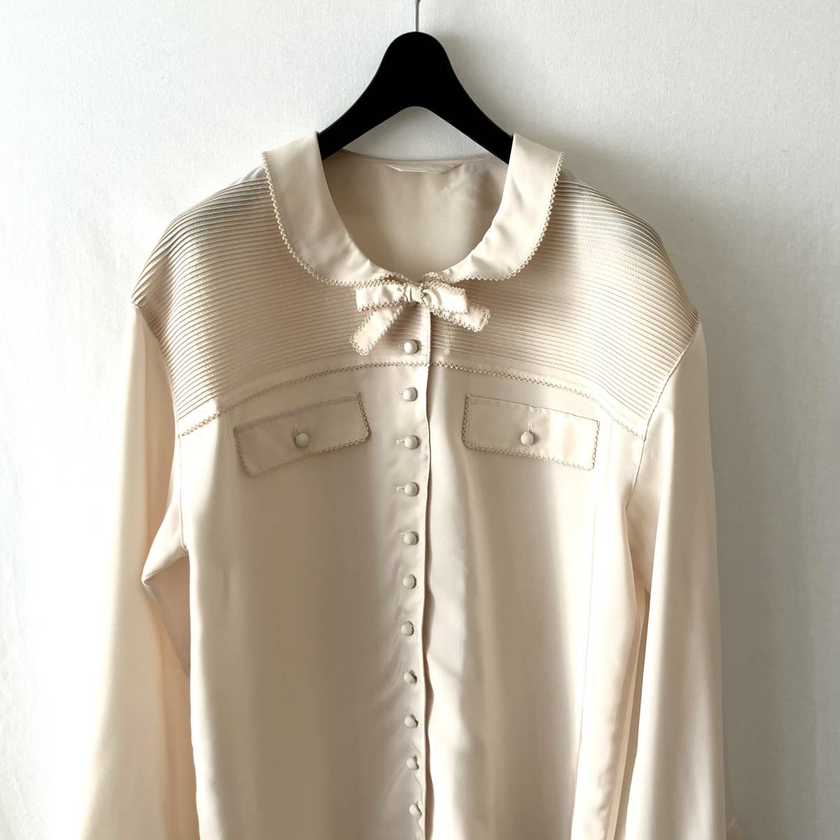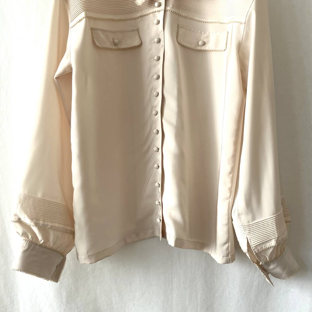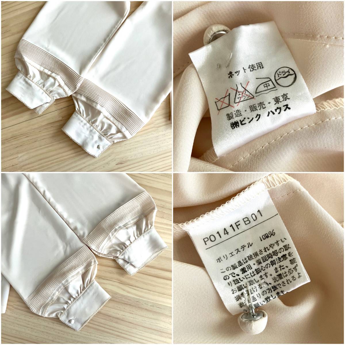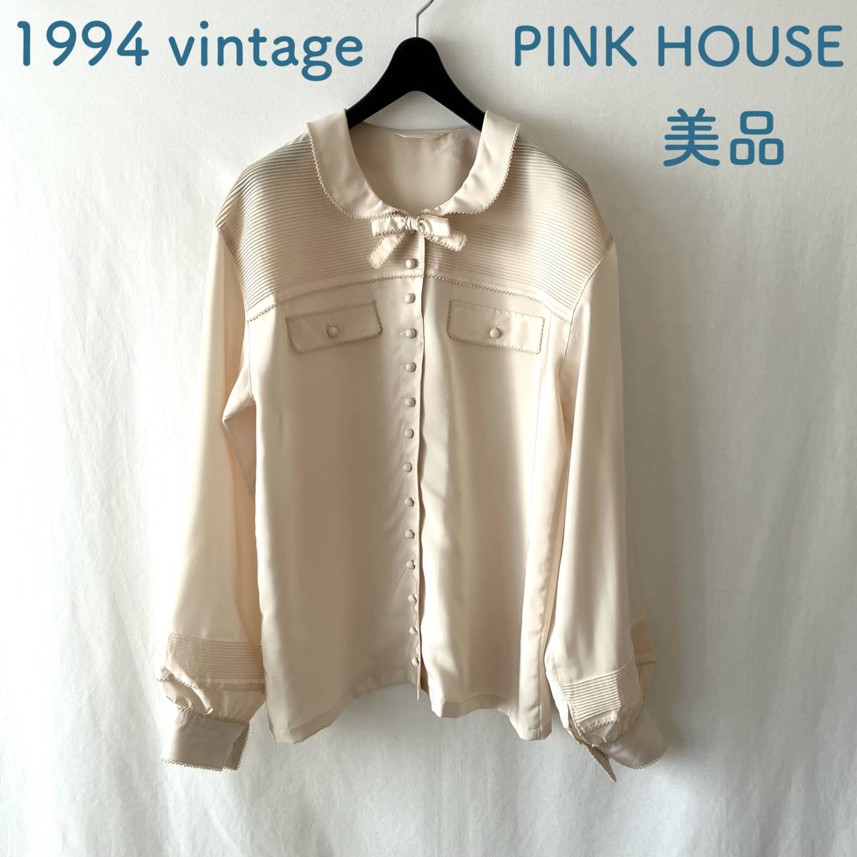 ■ 美品 ■ 90s vintage ■ PINK HOUSE ピンクハウス ■ リボン 縁かがり刺繍 ピンタック ■ ブラウス M~Lくらい アイボリー ベージュ系 ■