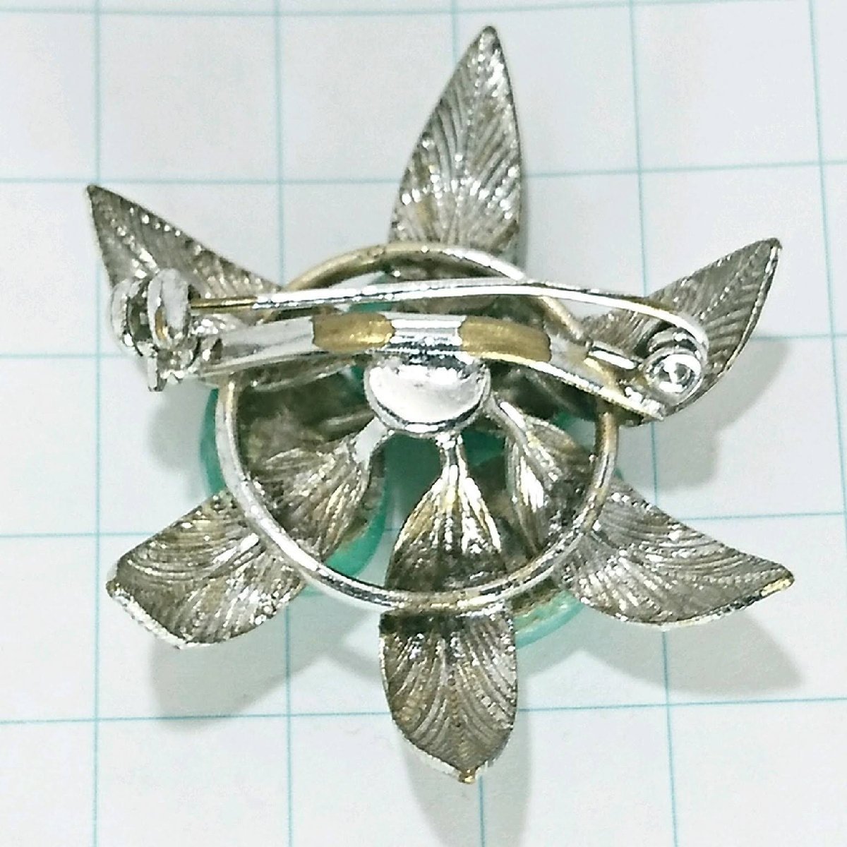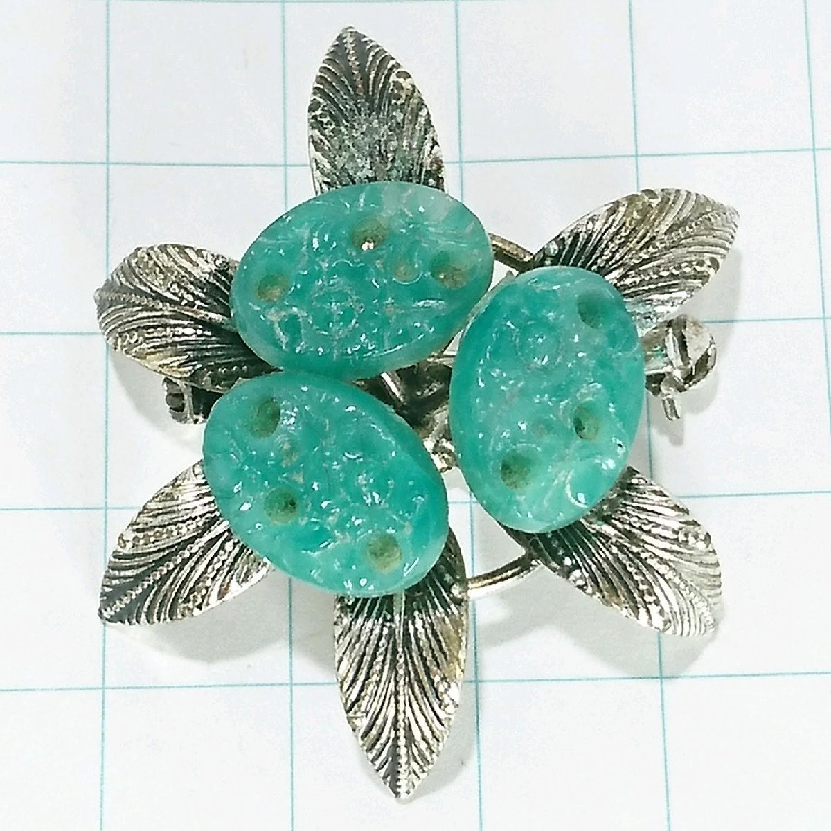 送料無料)ビンテージ☆お花モチーフ グリーン☆アンティーク ブローチ A22508