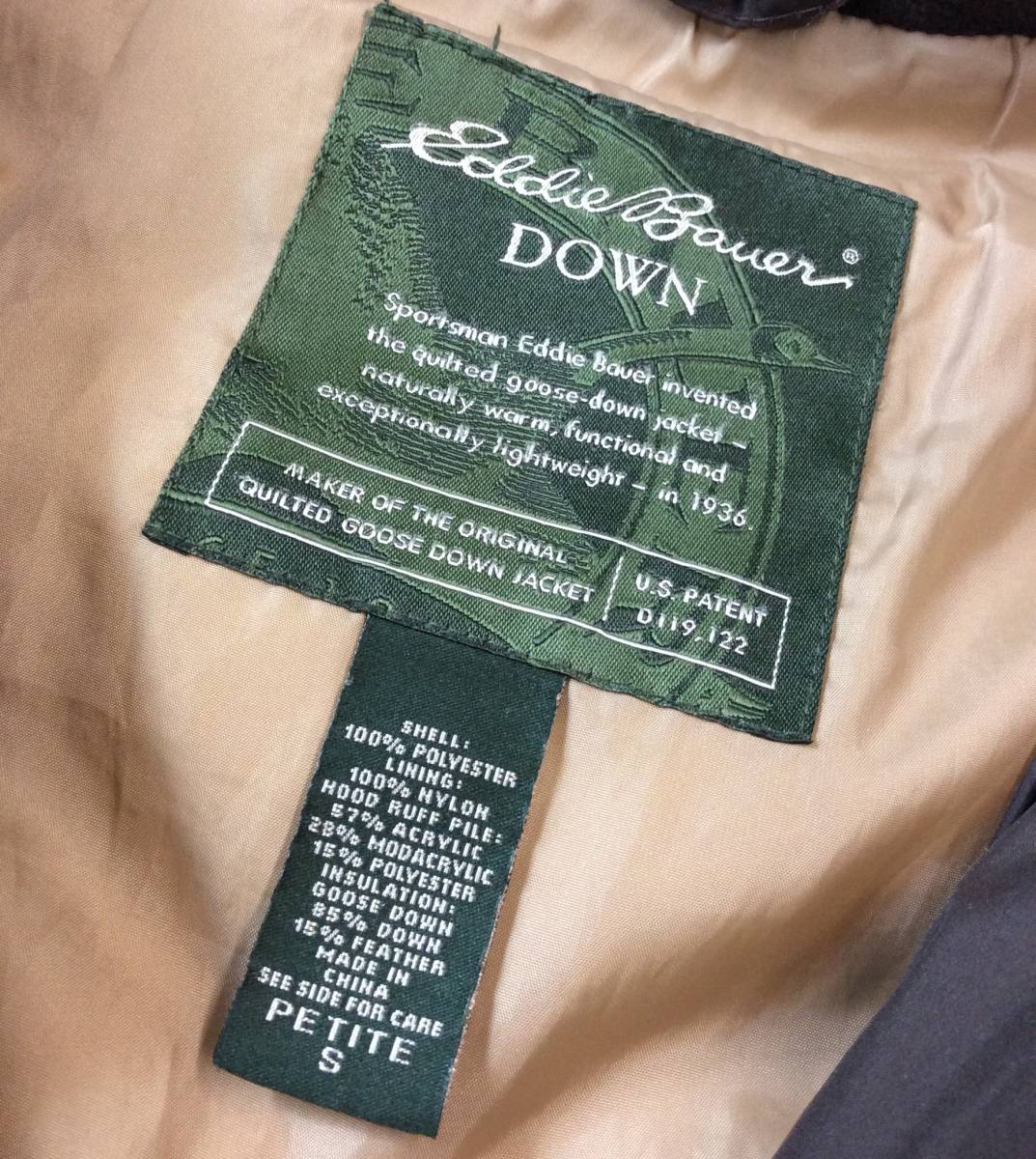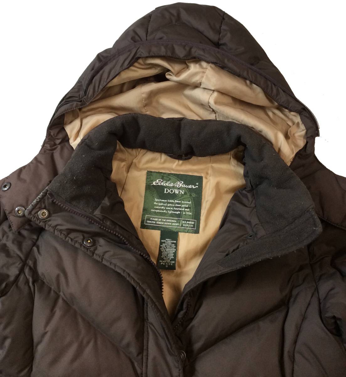Eddie Bauer DOWN エディーバウアー ダウンジャケット ダウンコート フード取り外し可能 ブラウン レディース S