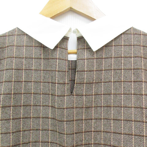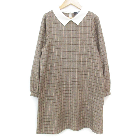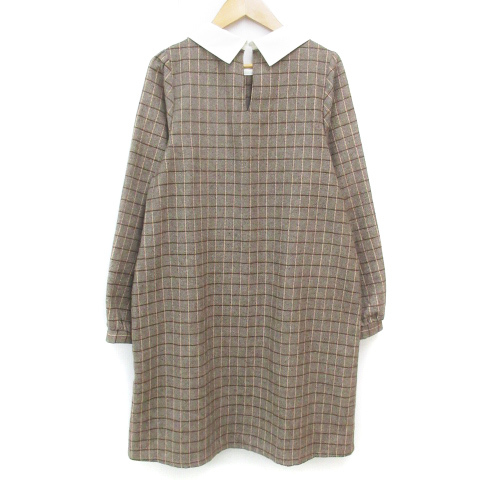アズノウアズ as know as シャツワンピース ひざ丈 長袖 グラフチェック柄 マルチカラー F 茶 白 ブラウン ホワイト /FF27 ■MO レディース