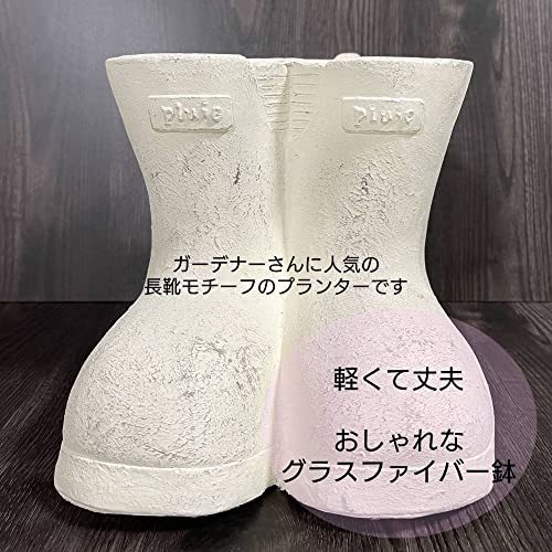 「植木鉢/鉢 【 ブーツ型 】 プランター おしゃれ/グラスファイバー 鉢・プランター/ホワイト/底穴あり 靴型 長靴型」▼▼(商品説明)おしゃれ・ホワイト 長靴・グラスは「ガラス」、ファイバーは「繊維」。繊維状にしたガラスを樹脂で固めて整形したのが、グラスファイバー製の鉢です。表面に素焼き鉢のような細かい気泡があり、自然な風合いが特徴的です。・グラスファイバーの鉢は表面に細かな穴が開いているため、通気性・通水性に優れ、植物の生育に適しています。陶器や木製の鉢より軽く、欠けたり割れたりしにくい強度も備えています。・見た目は素焼きの陶器や石のようにナチュラルで、多彩な色やデザインがあるのも魅力です。陶器では難しかった凝った形状や模様も、グラスファイバー鉢では自在にデザインできるため、おしゃれなアイテムがたくさん出ています。・長靴モチーフのプランターは、ガーデナーさんにも人気の高い商品となっております。・グラスファバー製品には、側面に縦の筋が入ります。 これは製造過程での型の跡で不良品ではございません。 また、商品の性質上、小さなキレ・気泡があります。 ご了承お願い致します。説明 グラスファイバーの鉢は表面に細かな穴が開いているため、通気性・通水性に優れ、植物の生育に適しています。陶器や木製の鉢より軽く、欠けたり割れたりしにくい強度も備えています。