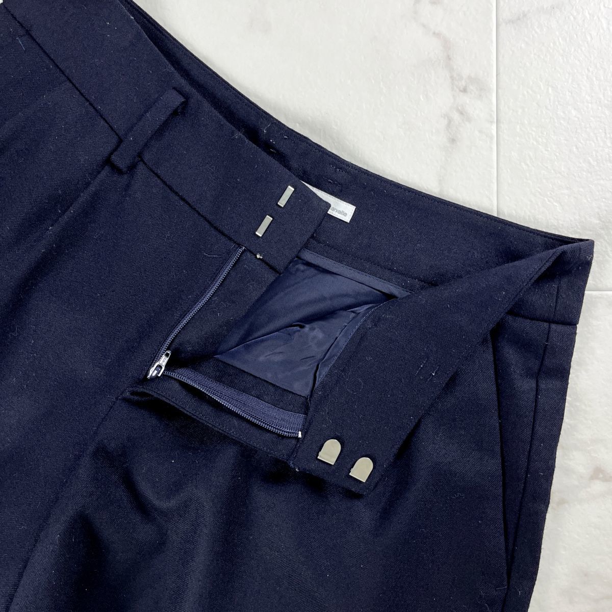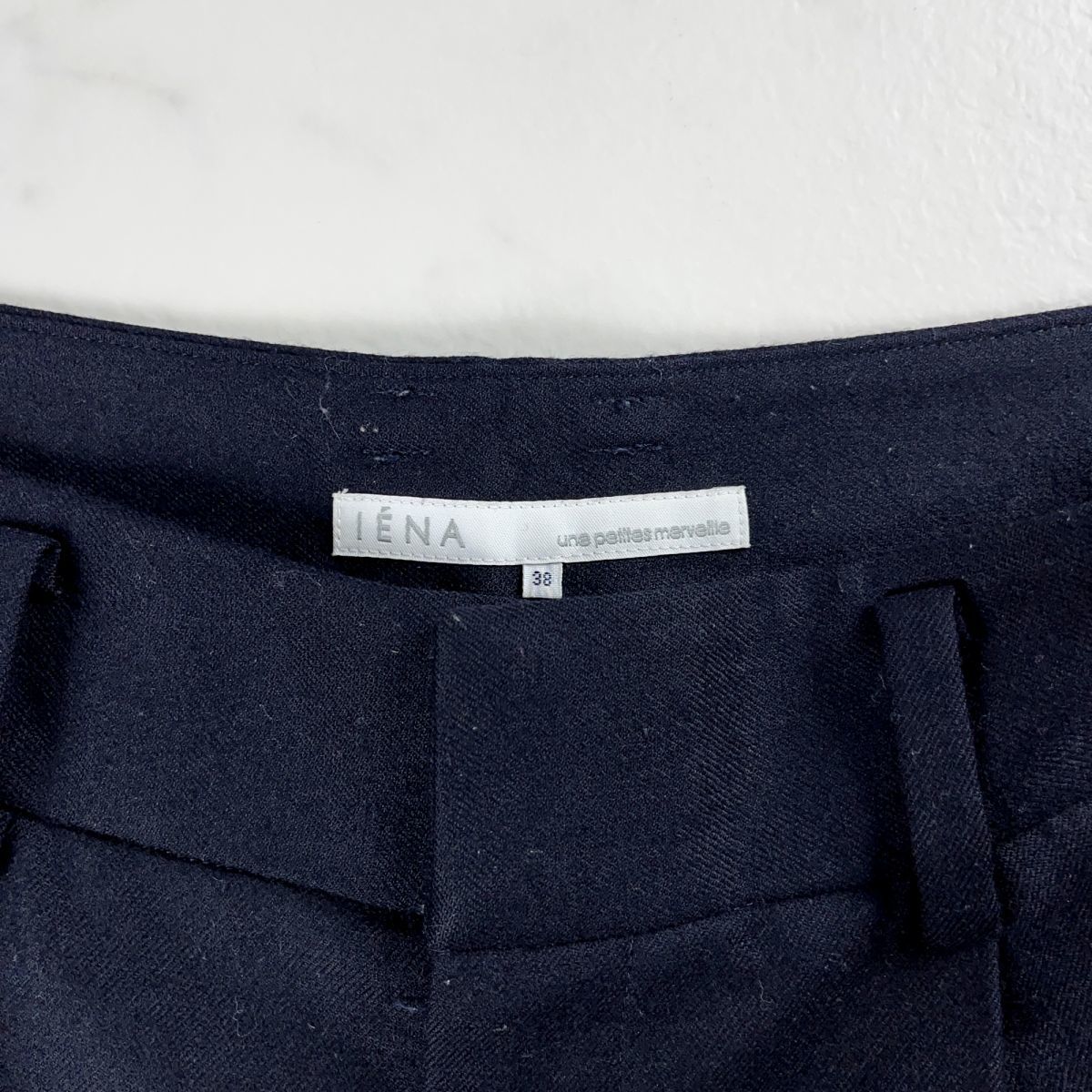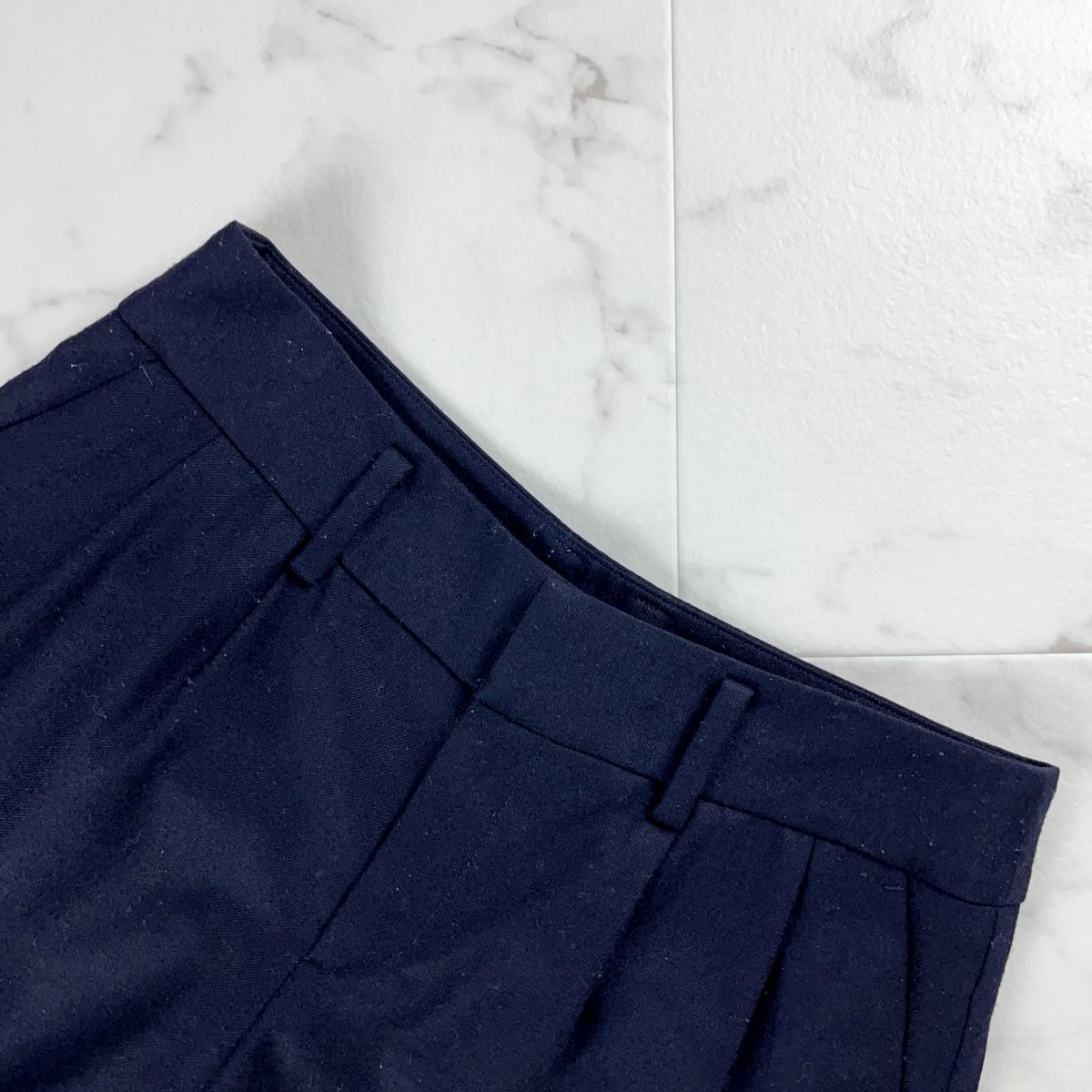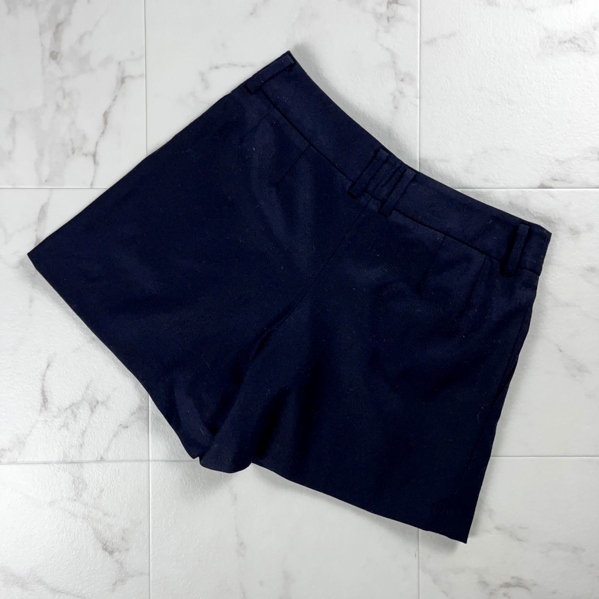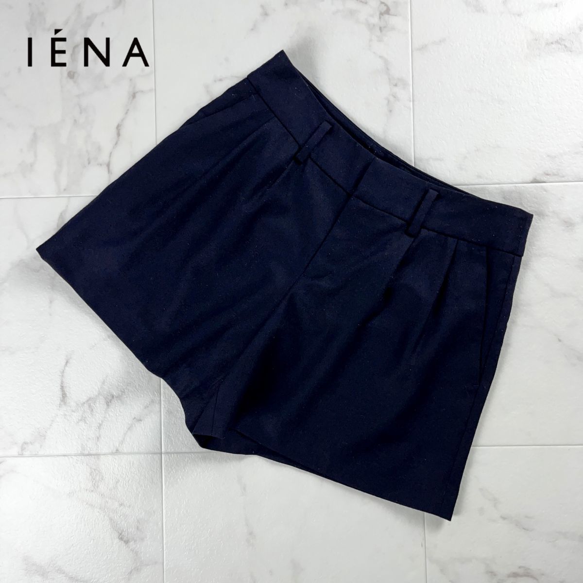美品 IENA イエナ ウール ツータック フレアショートパンツ ボトムス レディース 紺 ネイビー サイズ38*MC300