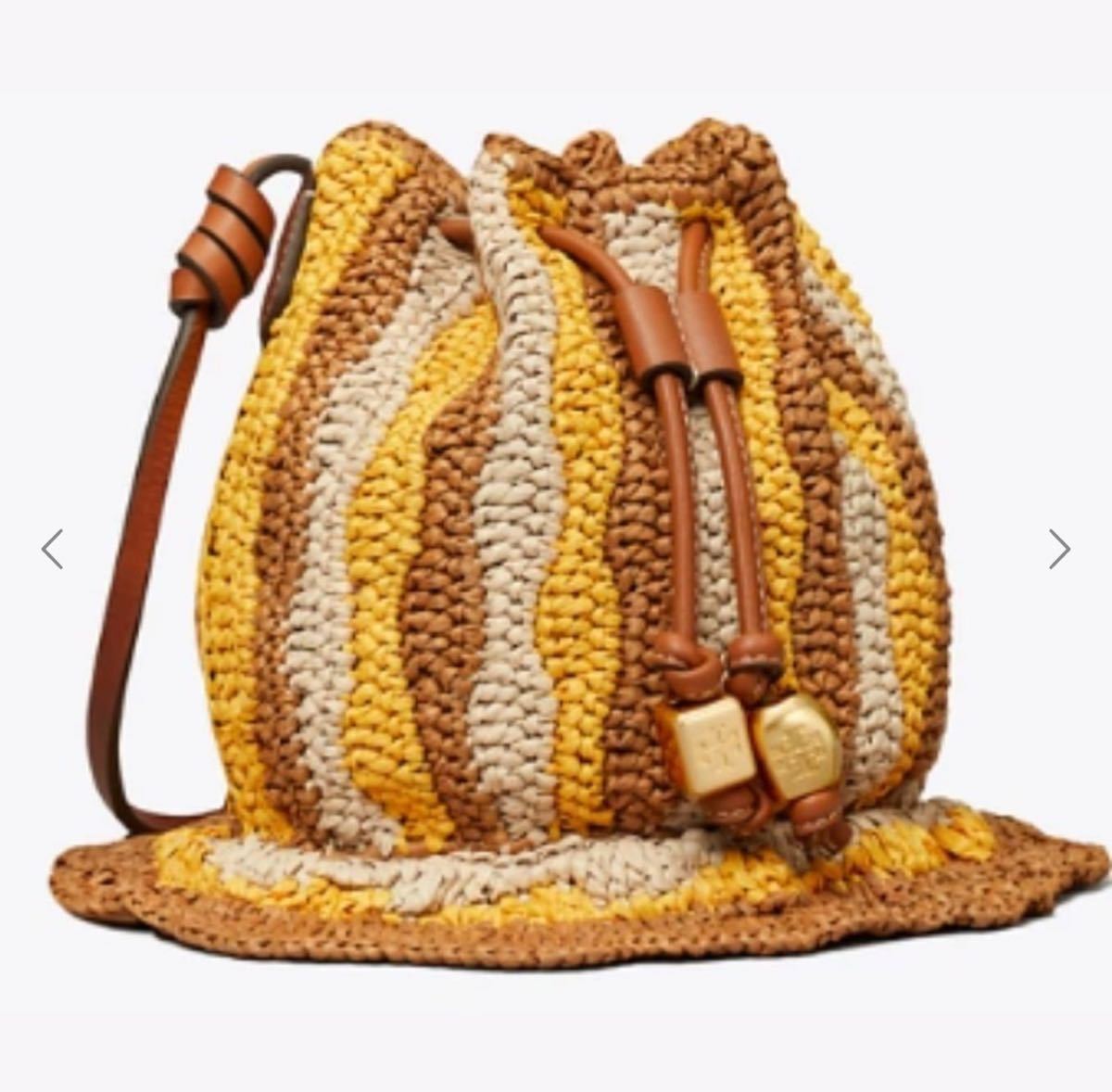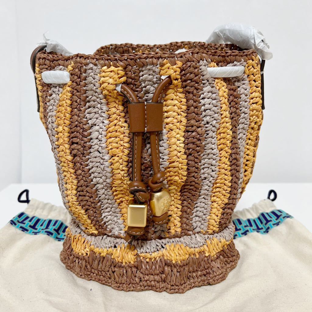 TORY BURCH トリーバーチ ラフィア マッシュルームバッグ ミニショルダーポシェット 巾着バッグ 未使用