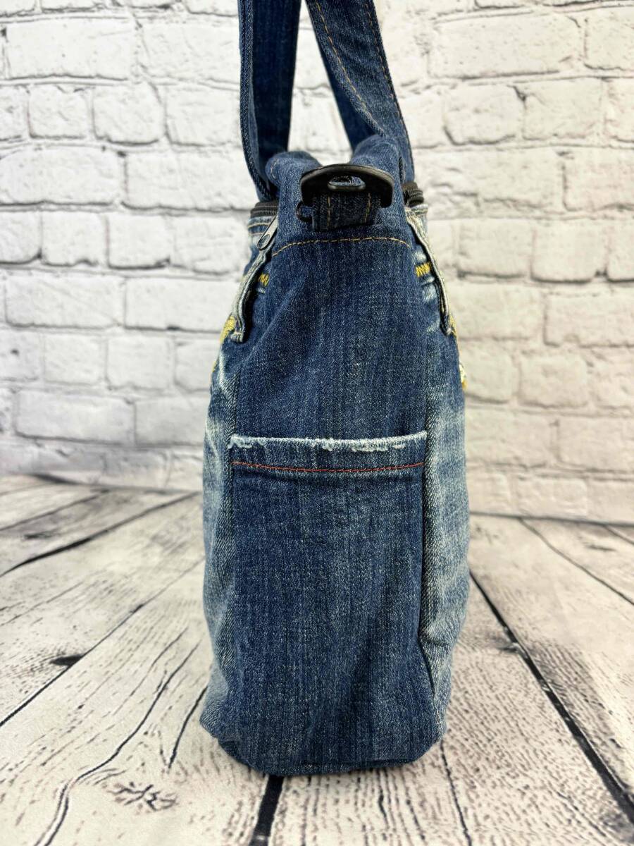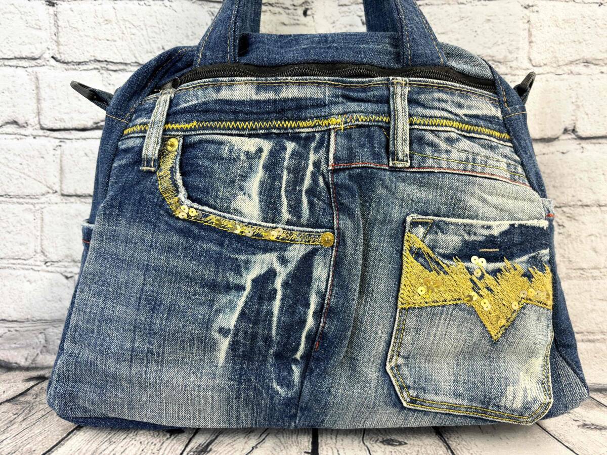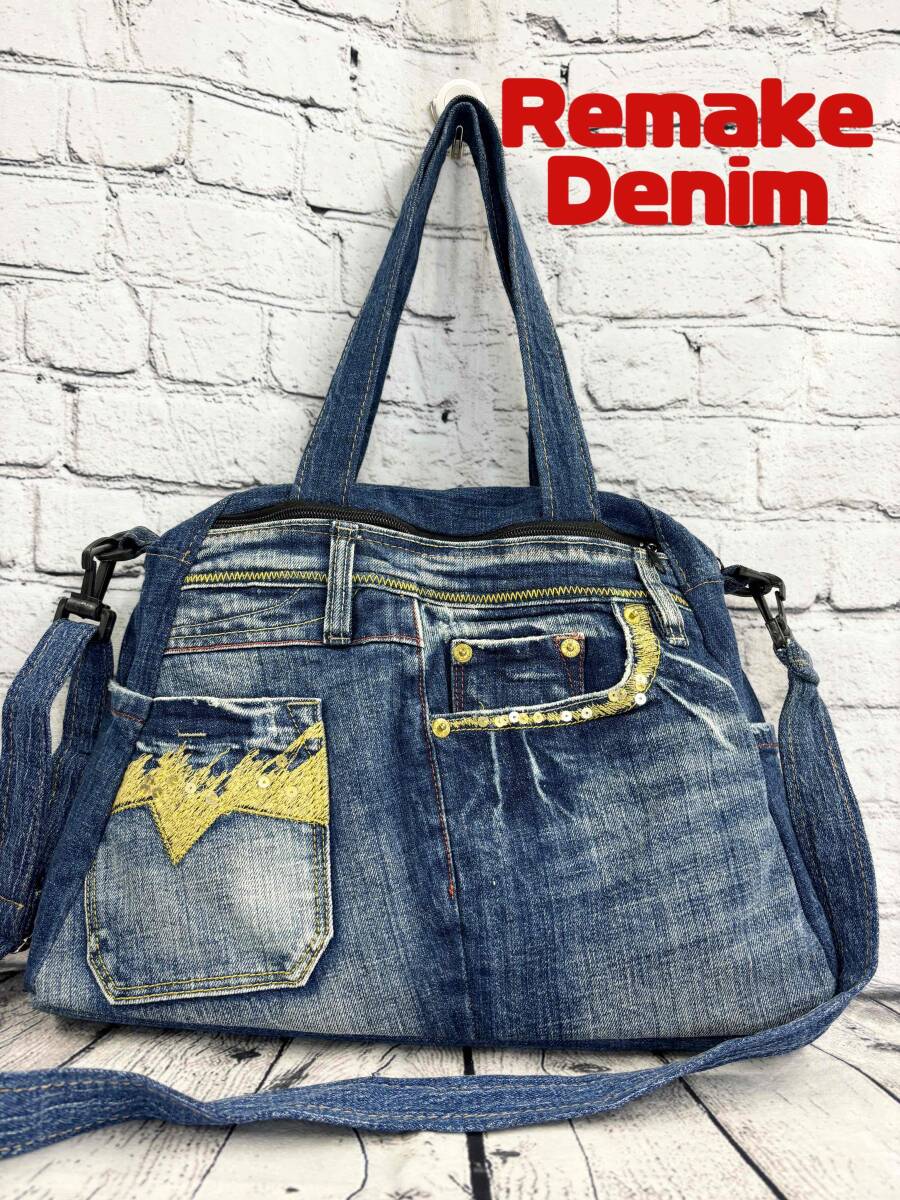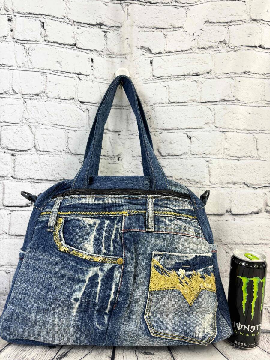 ★2way★ 【一点物】 ショルダーバッグ デニムバッグ リメイクデニム ハンドメイド ダメージデニム トートバッグ 肩掛け スパンコール