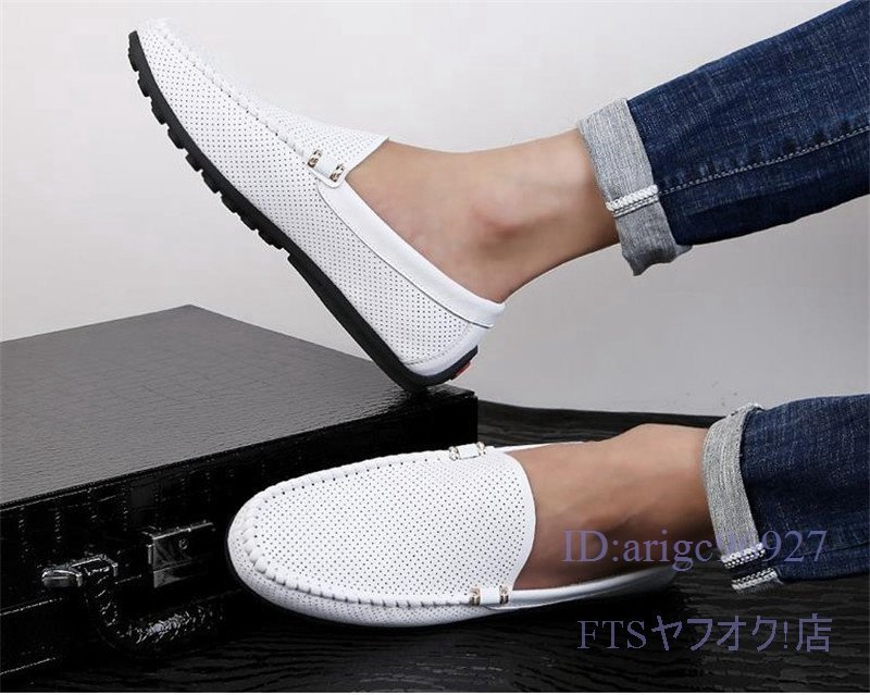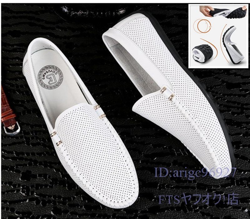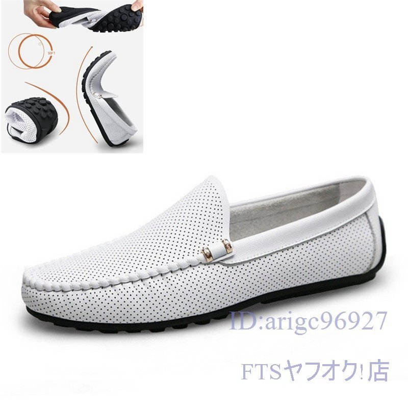T889☆新品ローファー メンズ* 紳士靴 メッシュ サンダル シューズ カジュアル スリッポン ドライビングシューズ 通勤通学 白 26.0cm