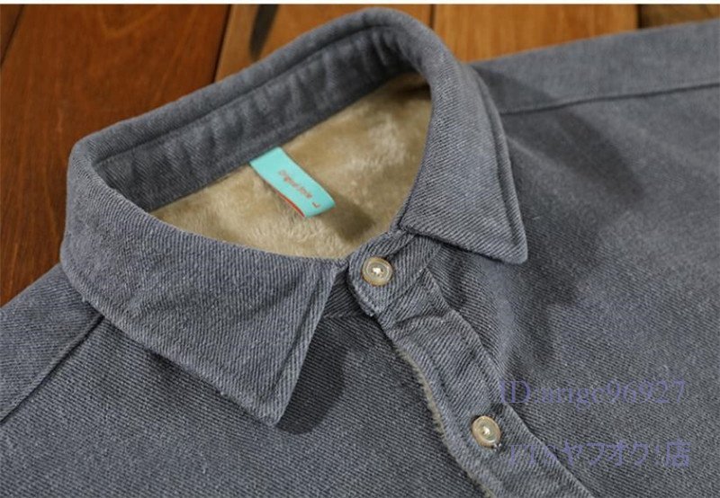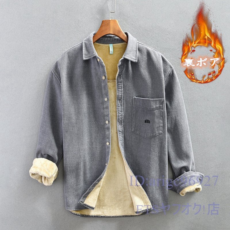 U322☆新品シャツジャケット 裏フリースシャツ ウエスタンシャツ 裏起毛ボア メンズ* オックスフォード トップス グレー 3XL