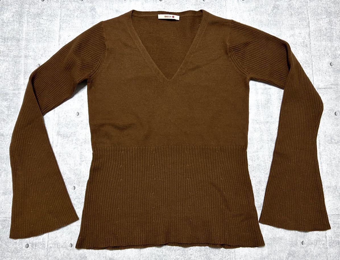 美品 BACCA TOMORROWLAND 袖フレア Vネック ウール セーター  バッカ トゥモローランド ニット ブラウン レディース 石瀬5912
