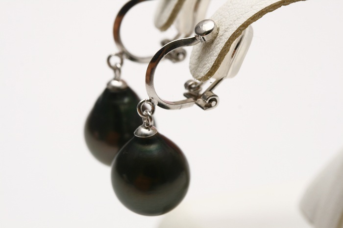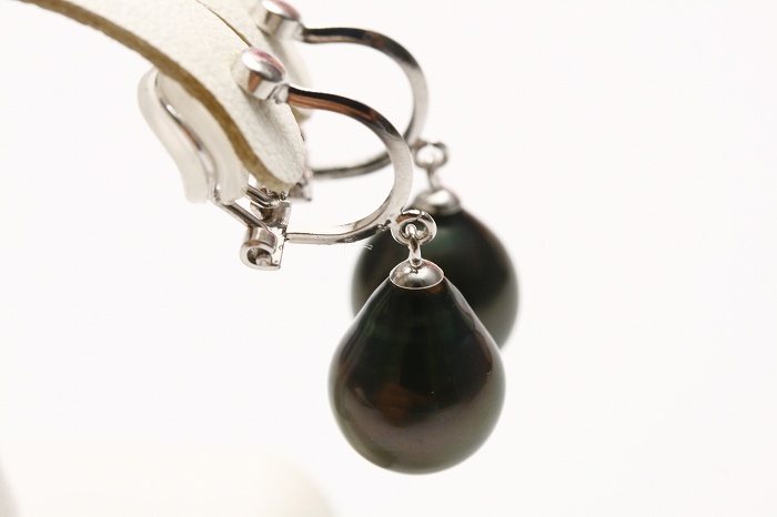 美しいドロップフォルムのタヒチパールイヤリングです。 真珠が別名「月のしずく」と呼ばれる由縁がこの真珠を見れば納得です。 このような綺麗なドロップパールはラウンドパールよりも数が少なく 耳元に飾るペア珠,胸元に飾るトップ珠として非常に人気が高いです。 滑らかなフォルムは丸い真珠に比べて身に着けた部分を スタイリッシュに見せ美しく揺れ動きます。 今回天然色で巻きテリも美しい珠をお選びいたしました。 幻想的な装いを演出するドロップパールをぜひ一度お試し下さい。 | |