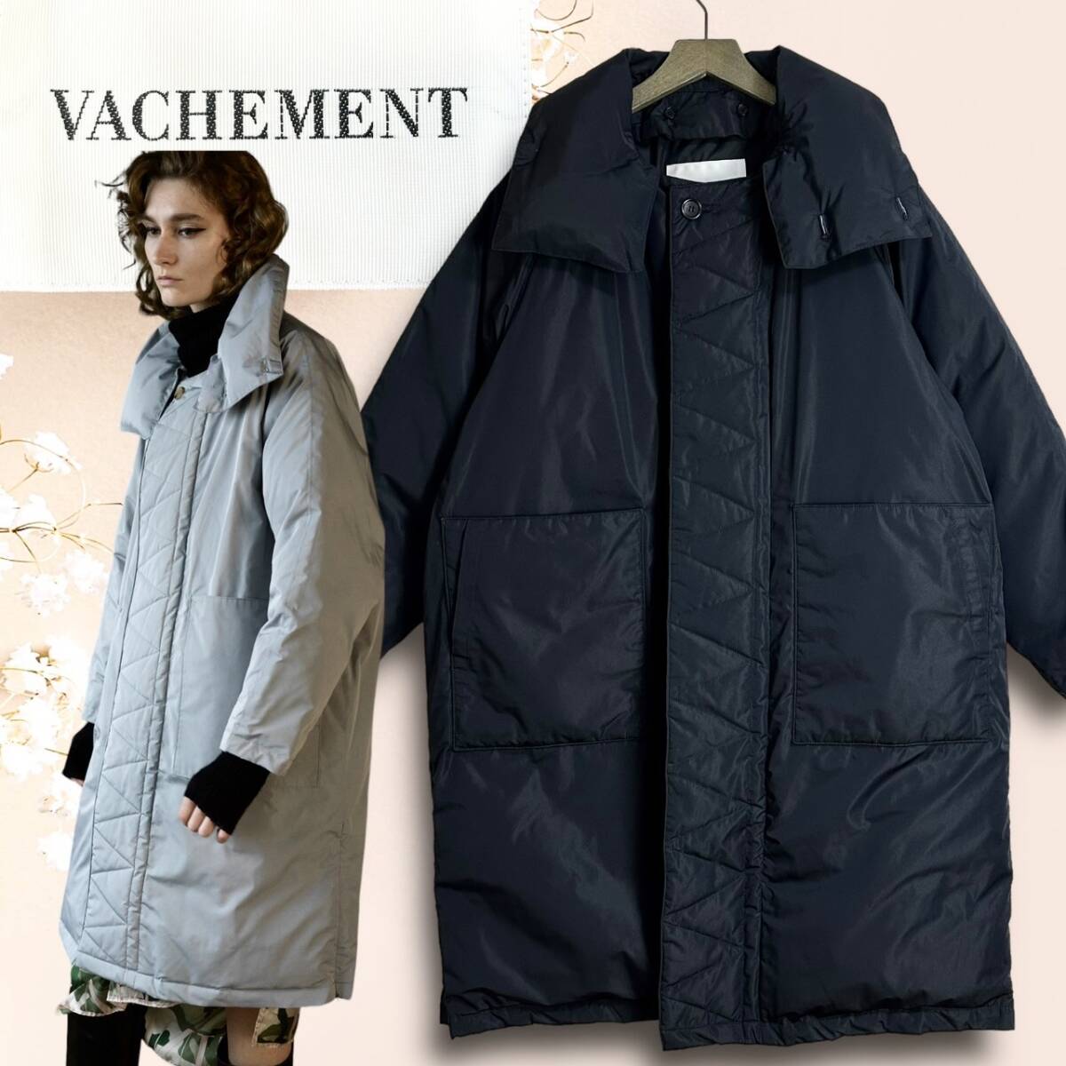 22AW☆極美品☆VACHEMENT ヴァシュモン ロングダウンコート ダウンジャケット 8.7万円 黒 ブラック シルク エクセラ 2022年 フリーサイズ