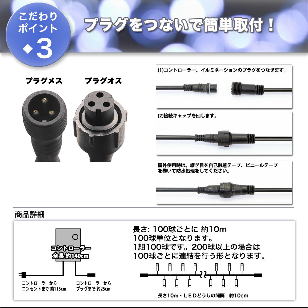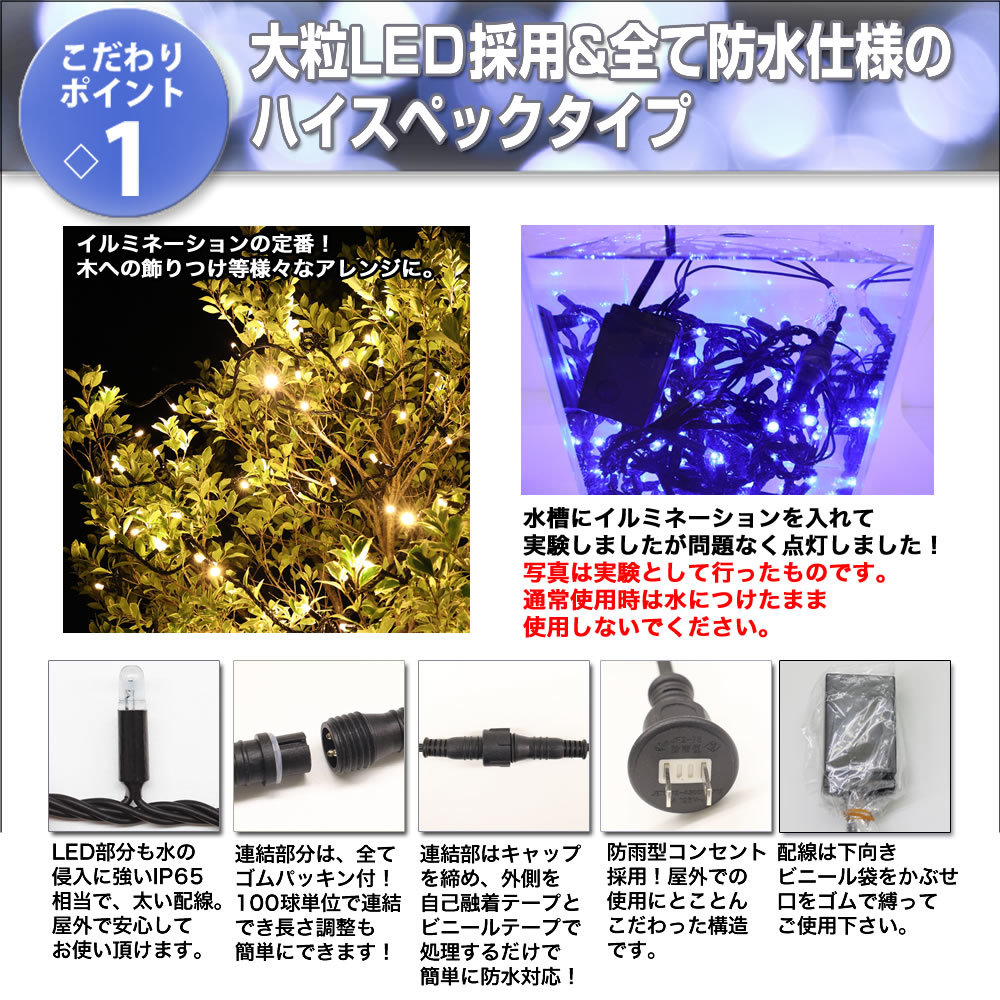 ストレート ライト ハイスペックタイプ 300球 30m ピンク 点滅 8種類 Aコントローラセット ![]() 最近は、LEDイルミネーションも各社が販売しており、 会社はもちろん、自宅等にもイルミネーションを飾り付けするケースも増えてきました。 イルミネーションで、木、庭、クリスマスツリー 等をライトアップでき、明るく印象を変える事ができます。 最近は、価格安いイルミネーションも増えていますが、 品質面に不安を感じた事はありませんか? 「防水性能がしっかりしておらず壊れた…」 「コントローラーの作りが簡素で不安」 等々で、失敗されたお客様、 品質にこだわったイルミネーションを使ってみませんか? 当社のイルミネーションは、購入してから 安心してお使い頂く為に、 とにかく品質面にこだわった商品です。 こだわりのポイントをご紹介いたします。 ![]() ![]() ![]() ![]() ![]() ![]()