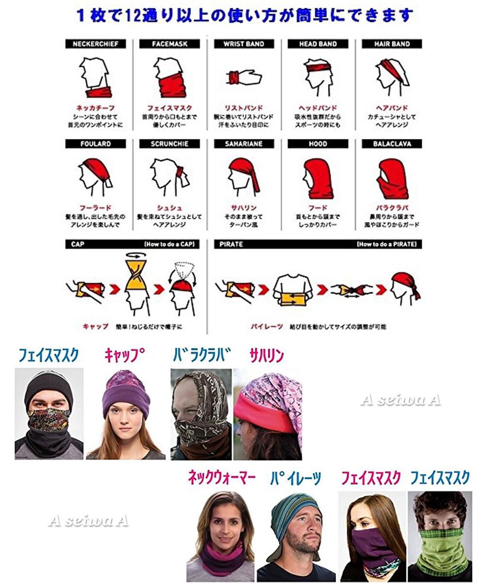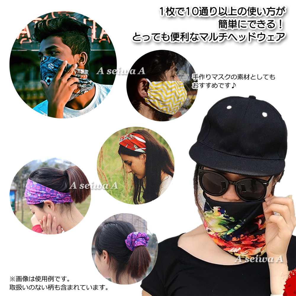 特徴 ・さまざまな用途に使えるチューブ型タイプのヘッドウェア(バンダナ)です。