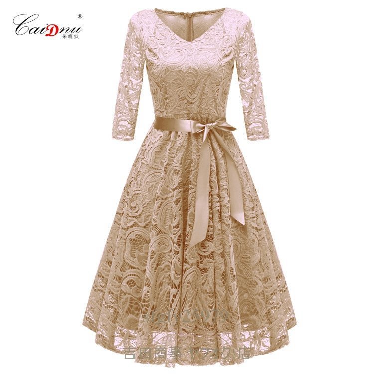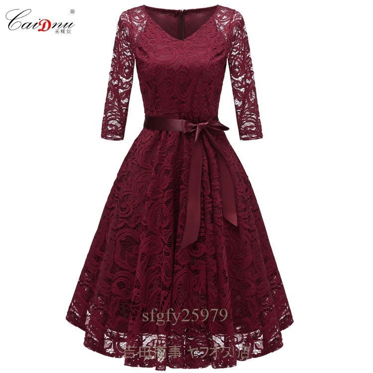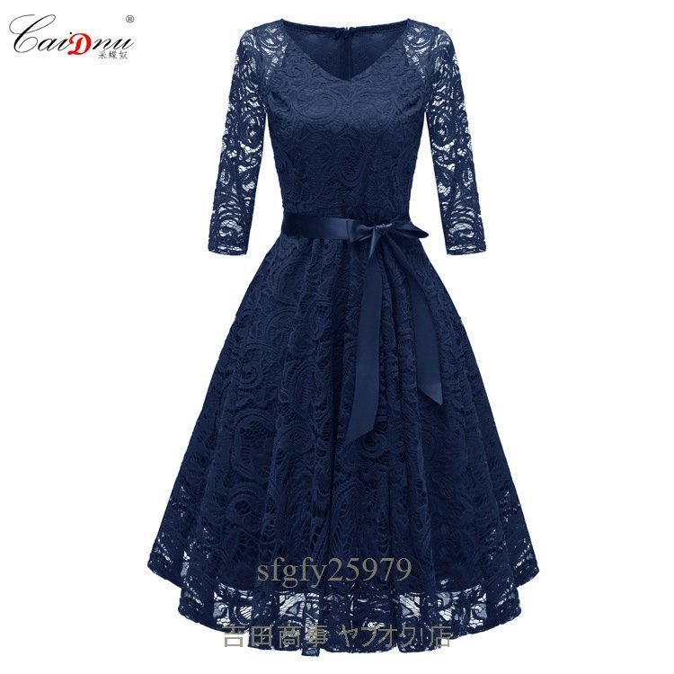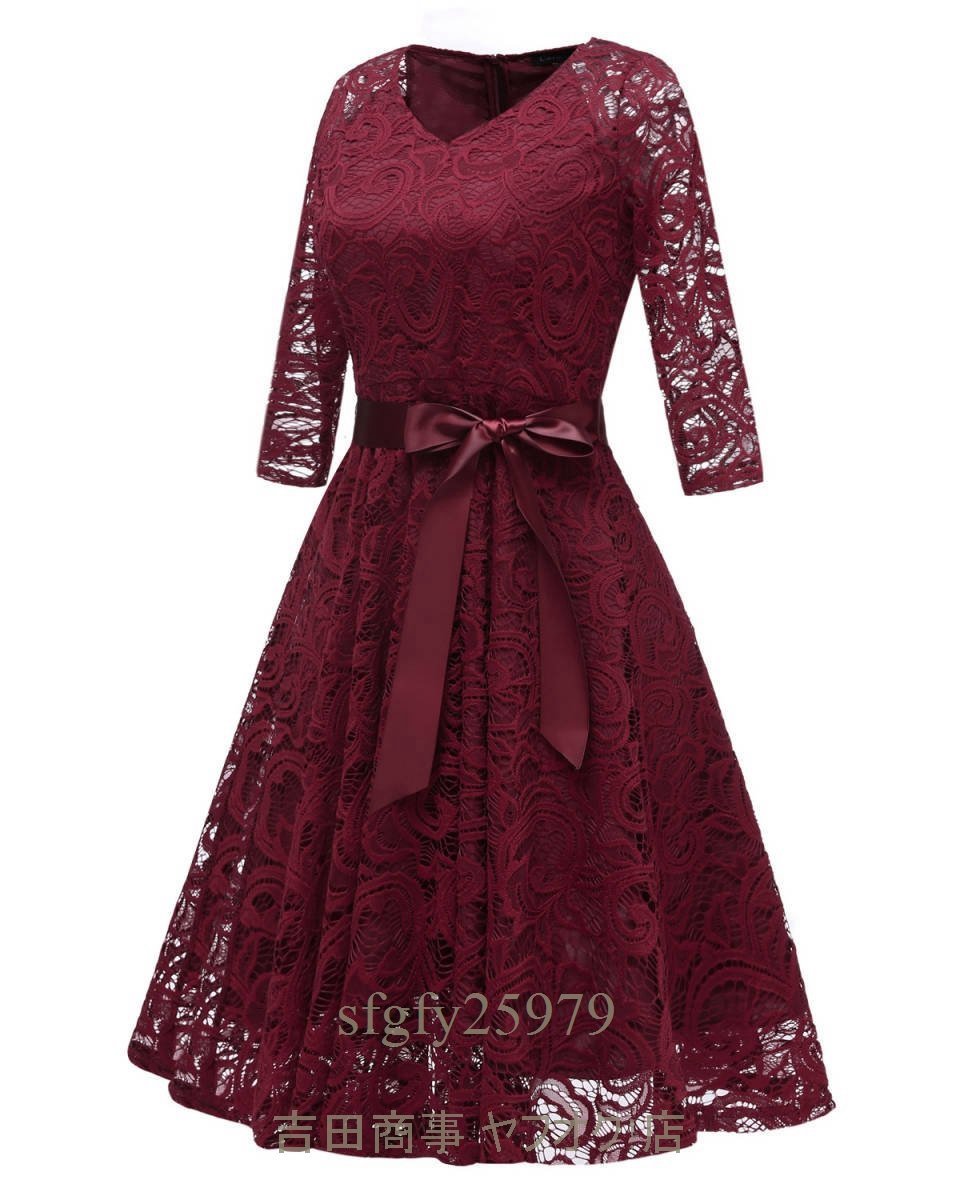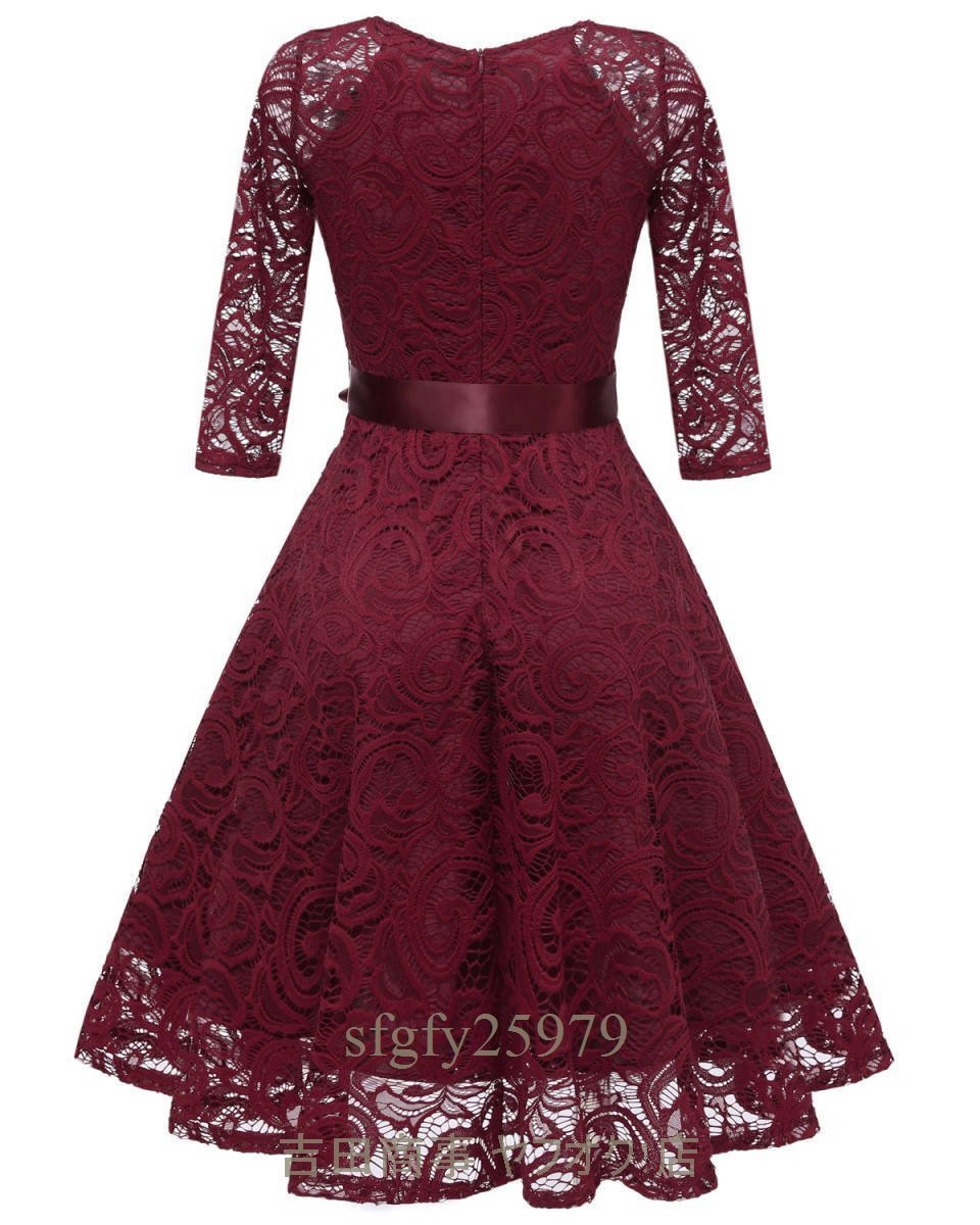 A9969☆新品ドレス パーティードレス レディース 結婚式 七分袖 かわいい ワンピース L