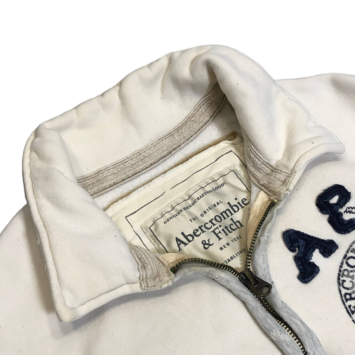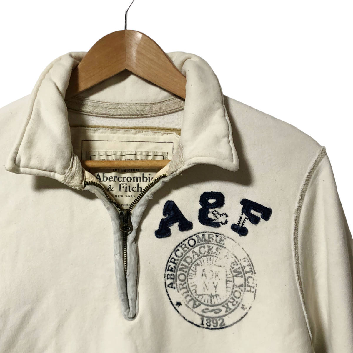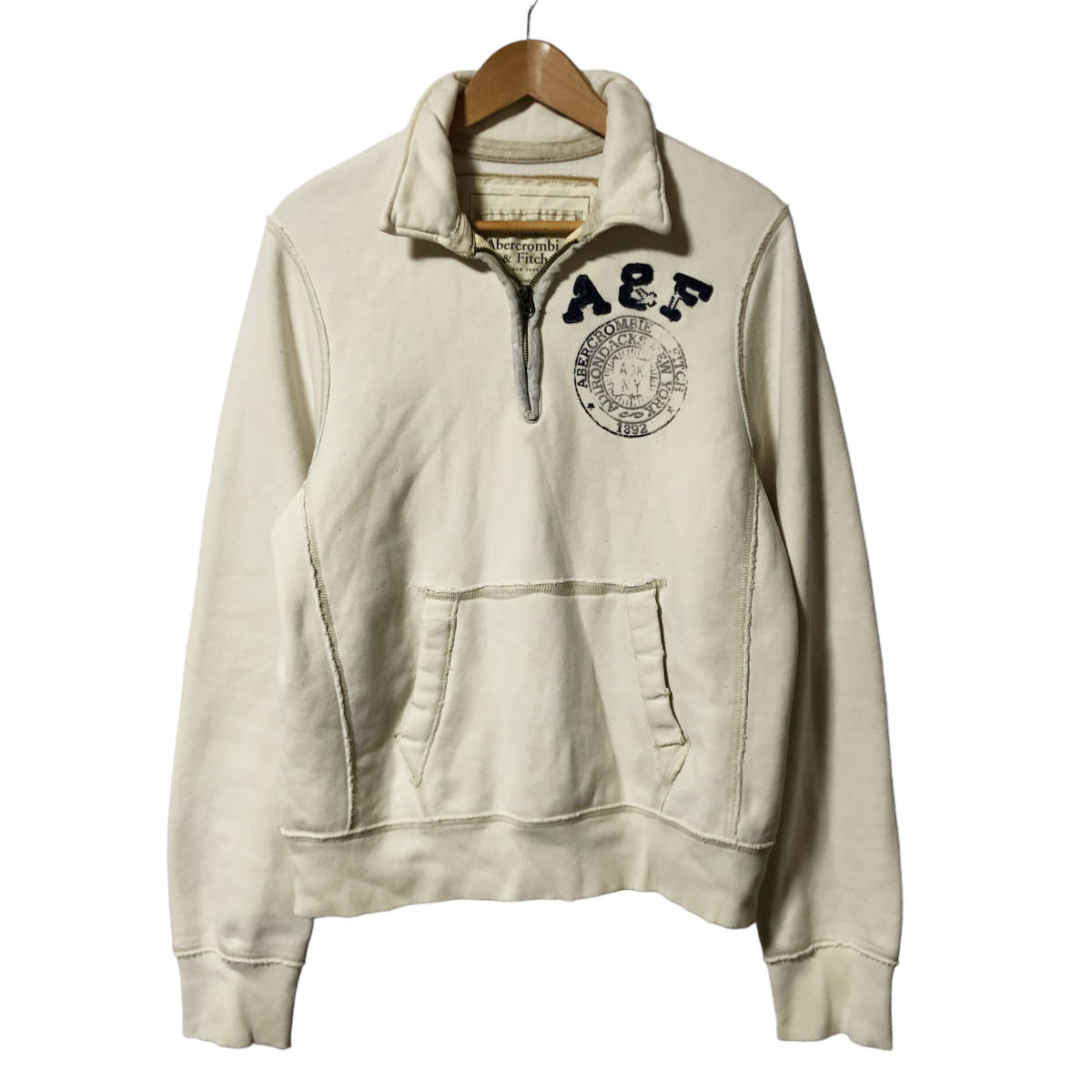 Abercrombie&Fitch アバクロンビー&フィッチ ハーフジップ スウェット ダメージ加工 ロゴ ナンバリング M ライトベージュ メンズ A38