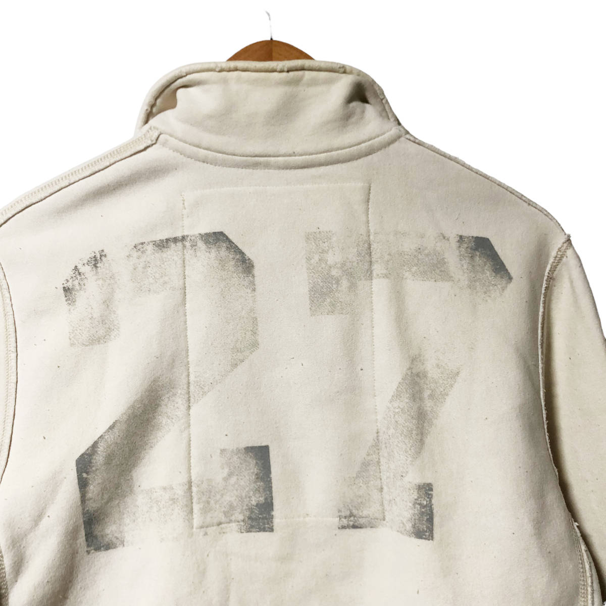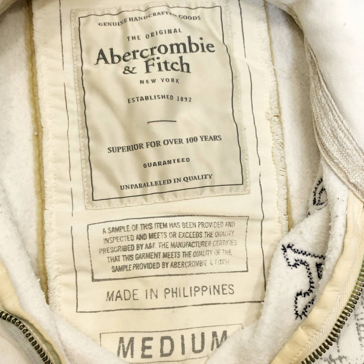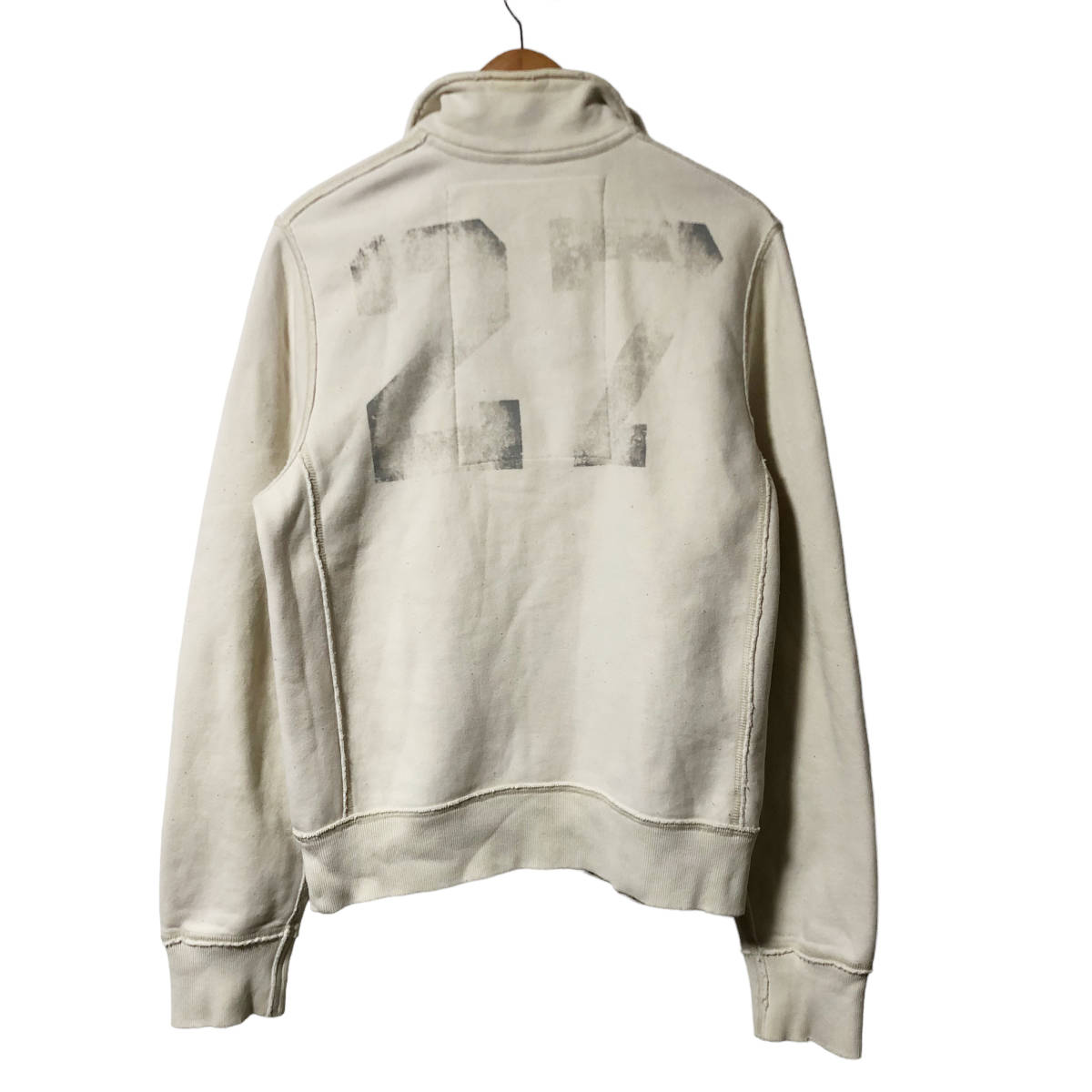 Abercrombie&Fitch アバクロンビー&フィッチ ハーフジップ スウェット ダメージ加工 ロゴ ナンバリング M ライトベージュ メンズ A38