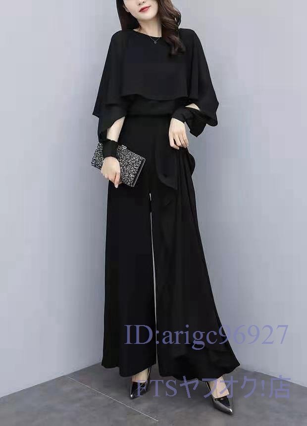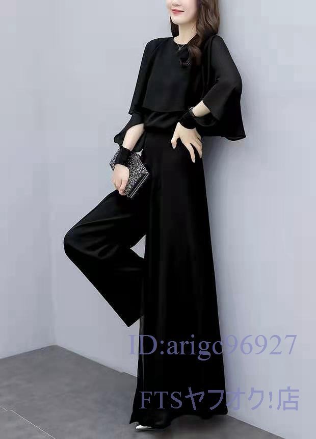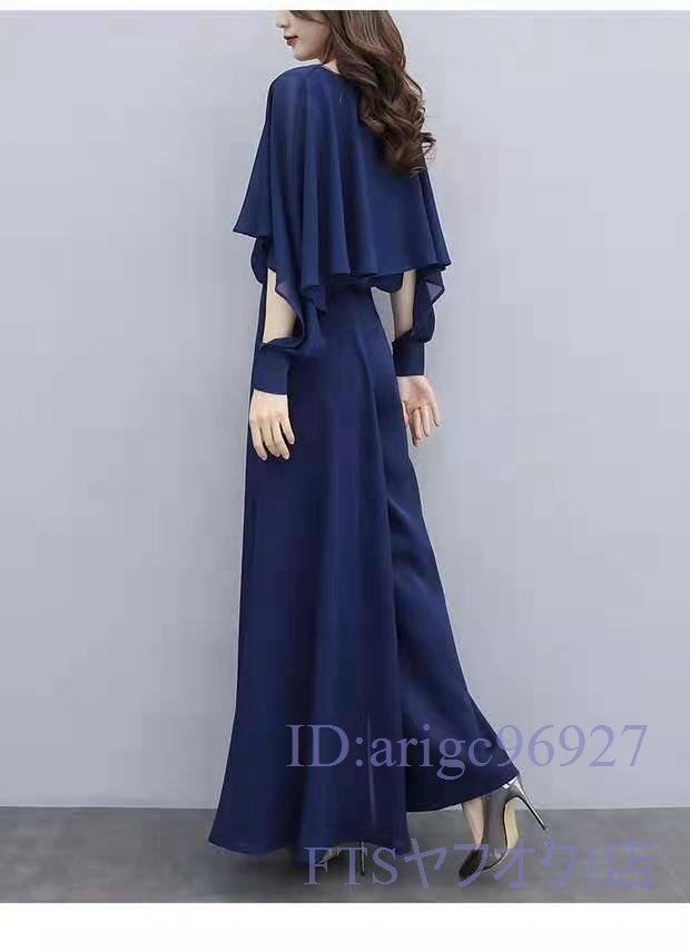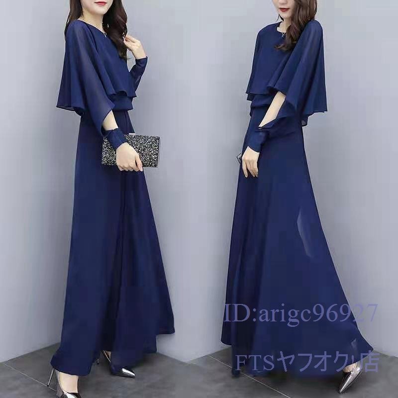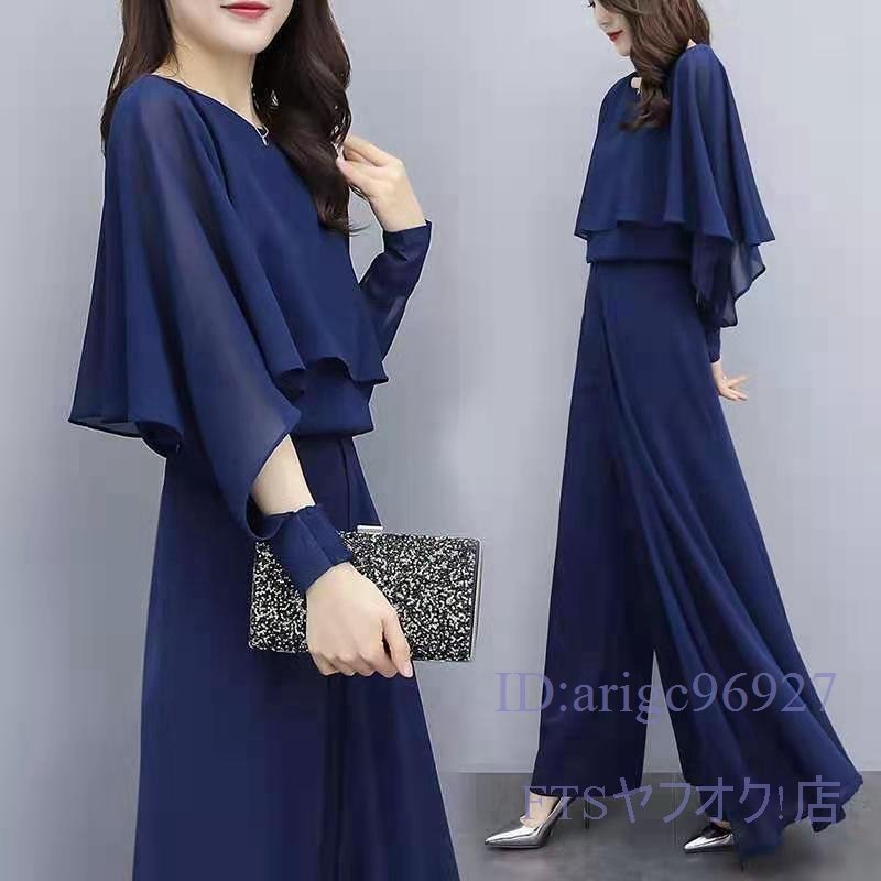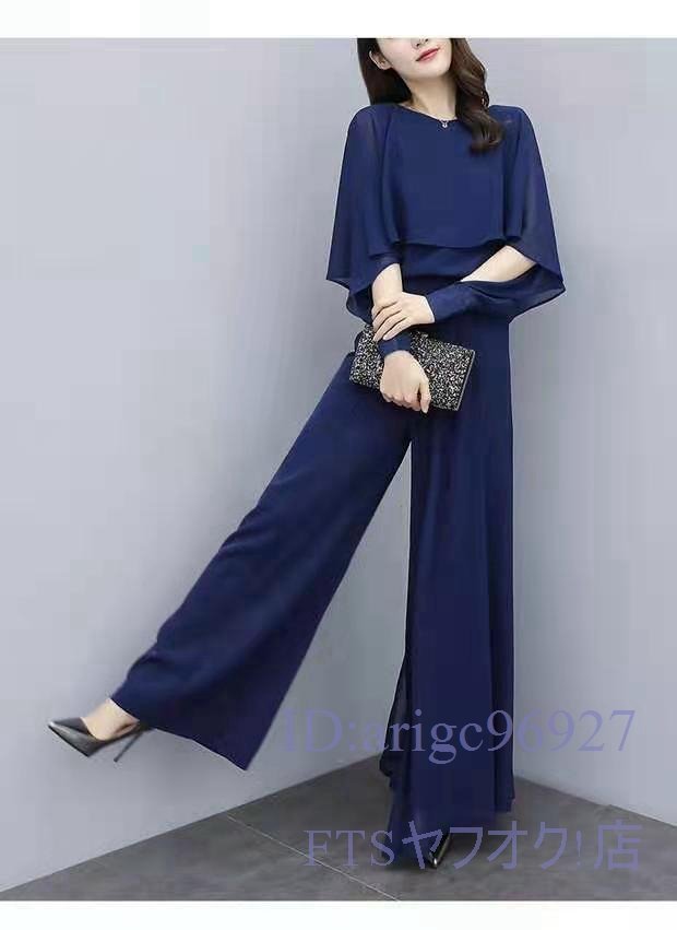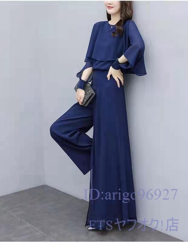 A0282☆新品エレガントレディース上下パンツ スーツ シフォン ドレス オフィス セットアップ 通勤 フォーマル Aライン ブルーS-3XL
