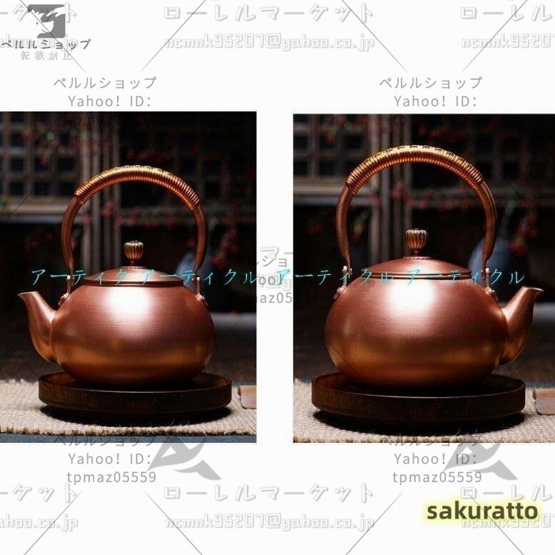 紫銅 銅製ポット お茶沸かし やかん ティーポット 水がスムーズに出られる 水質を改善する 1.2L