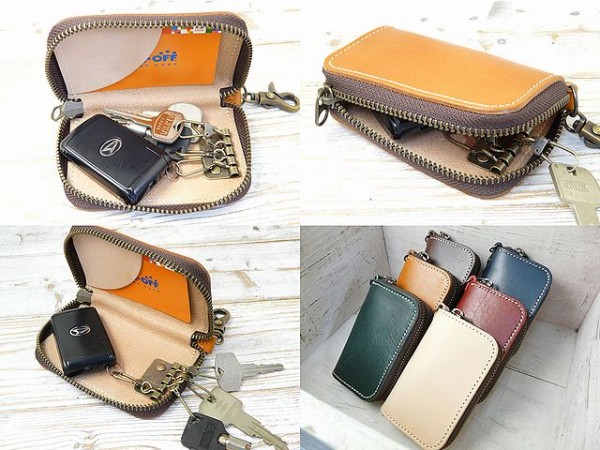 送料無料 ラウンドジッパーキーケース lkc-30 キャメル