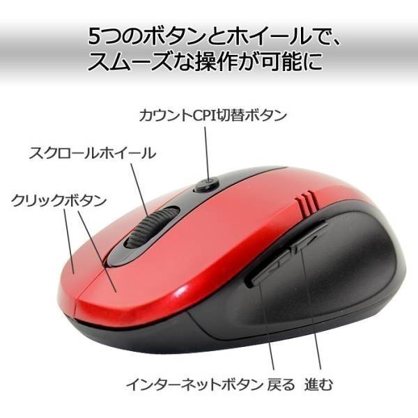 【送料無料】 ワイヤレス マウス 光学式 5ボタン 最安値 レッド