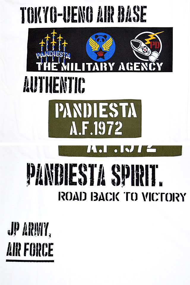 バックにはレタードとパンダをミックスされたミリタリーロゴをプリント。