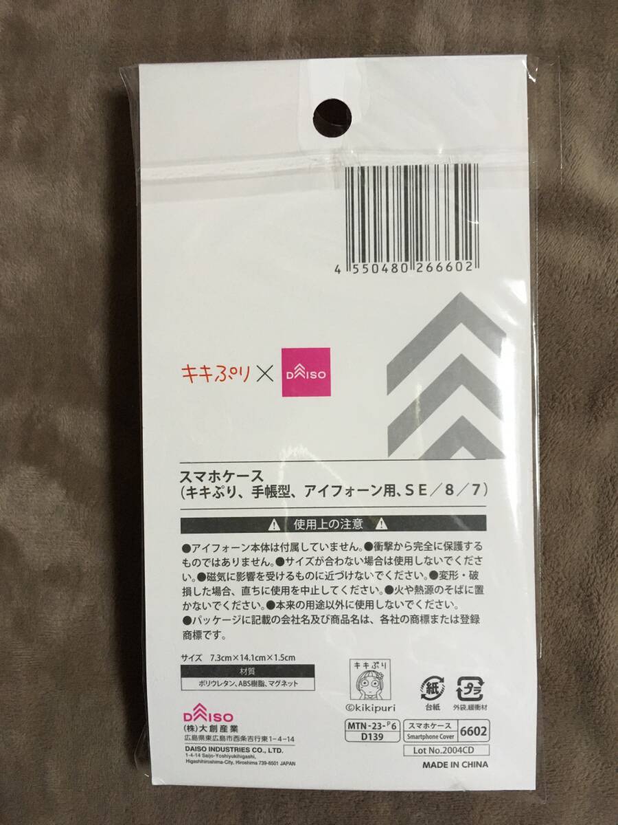【 送料無料です!!・未使用品!】★キキぷり×ダイソー◇手帳型スマートフォンケース◇iPhone SE(第2世代)/7/8用★