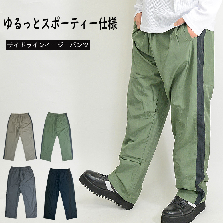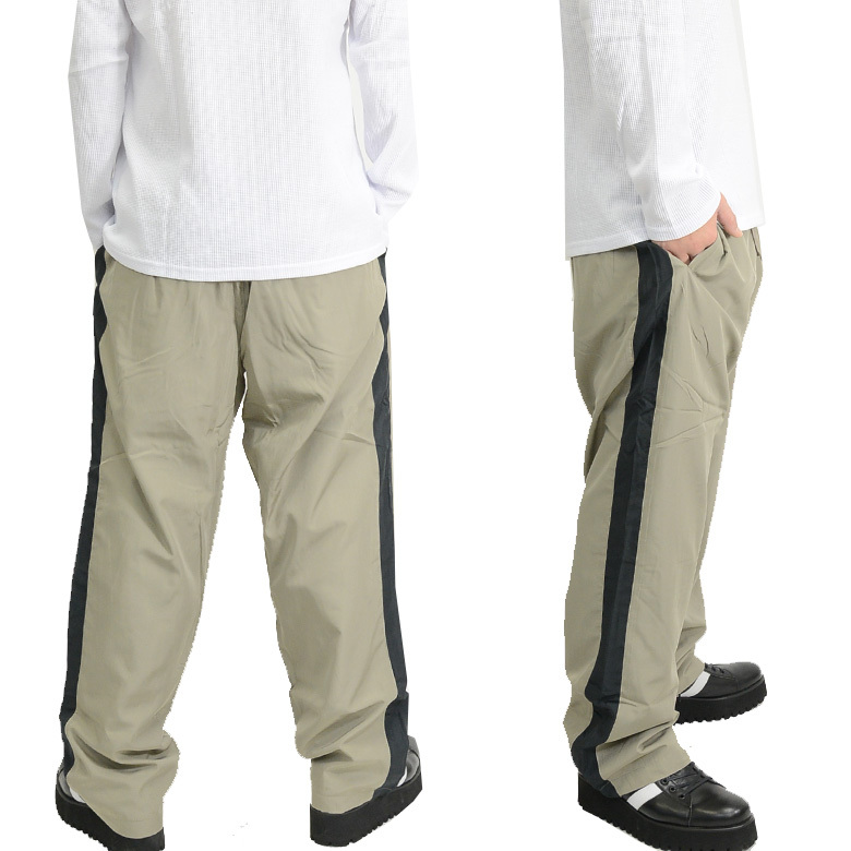 サイドライン ポリ素材ワイドイージーパンツ 28861 メンズ トリコット裏地 パンツ 新品ベージュM