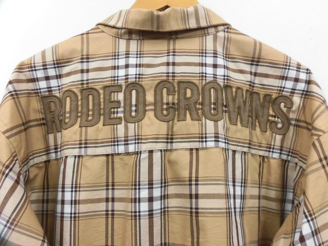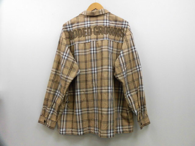 RODEO CROWNS ロデオクラウンズ チェック柄 シャツ 長袖 バックロゴ オーバーサイズ トップス ベージュ Lサイズ レディース