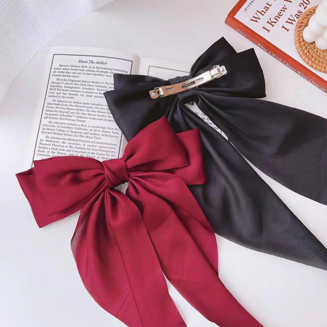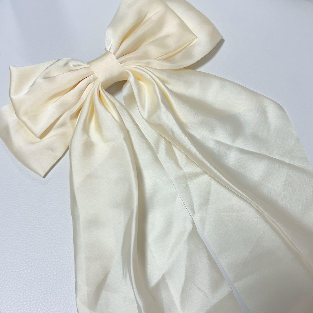 サテン生地の大きめりぼんが可愛いヘアクリップです