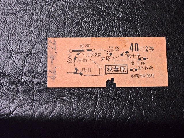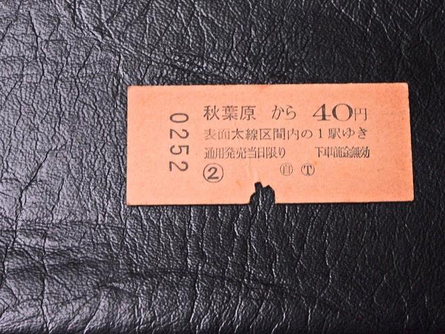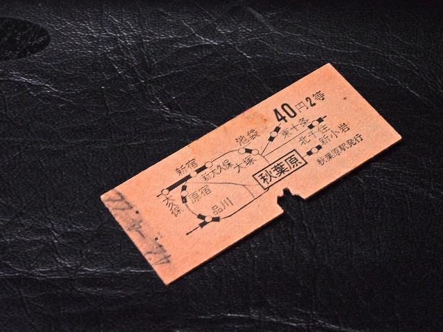 【切符】硬券 乗車券 秋葉原駅から40円区間2等客席 国鉄 山手線 中央線 鋏