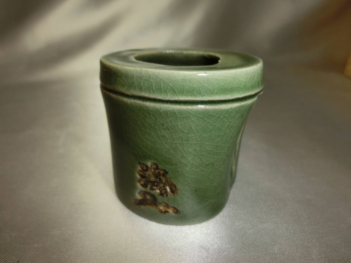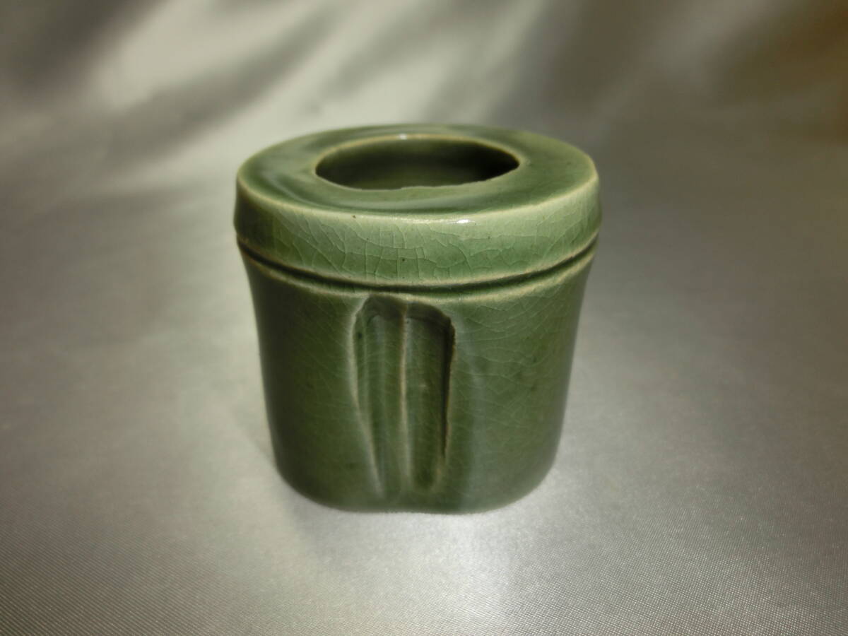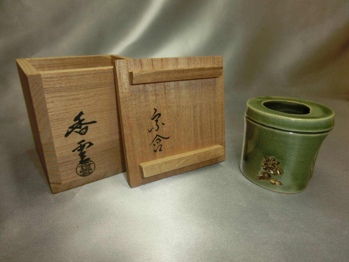 青磁 竹 蓋置 宗含(そうがん) 裏千家 井口海仙(かいせん) 宗匠 名と花押入り 宮川香雲 京焼