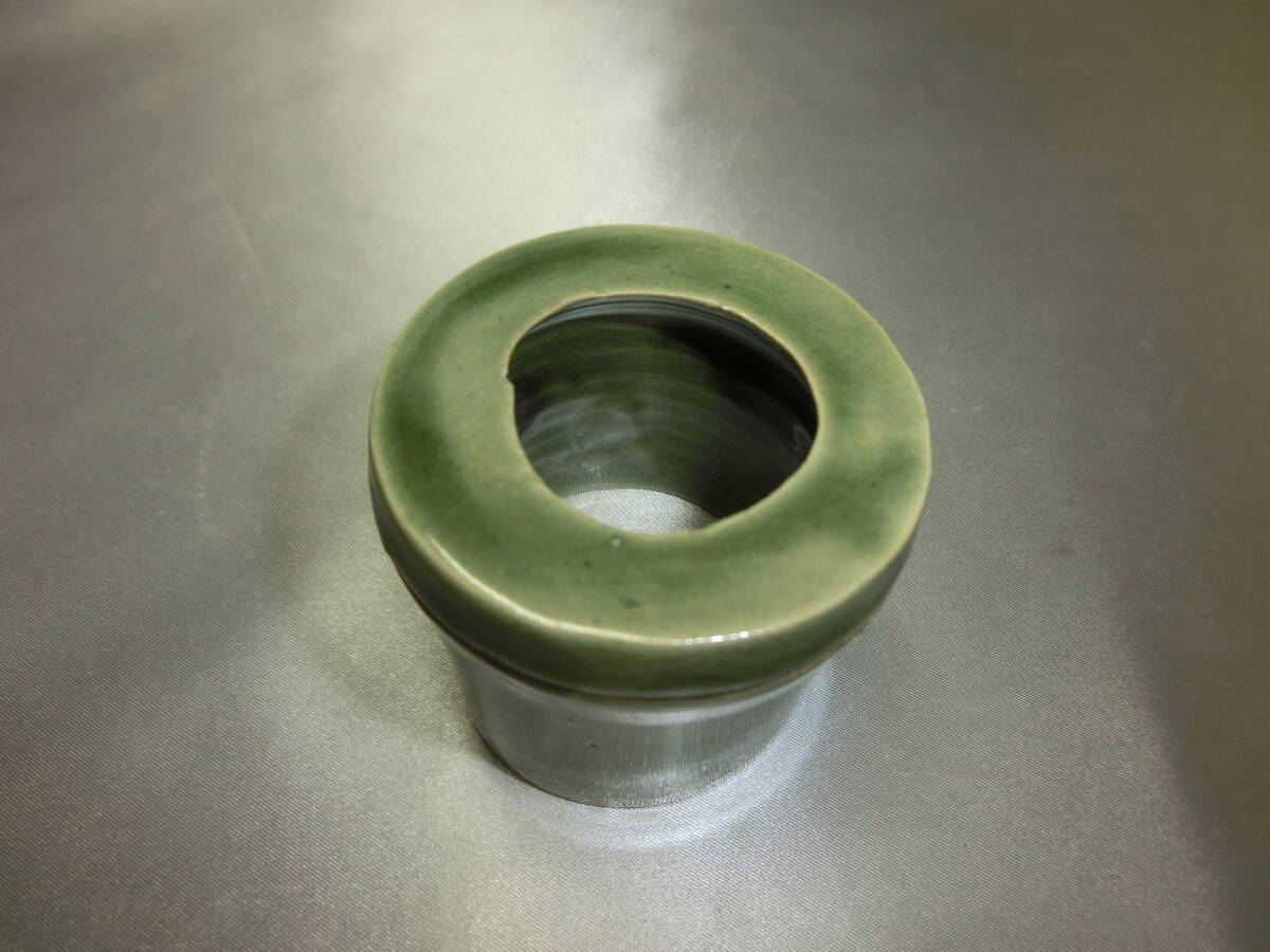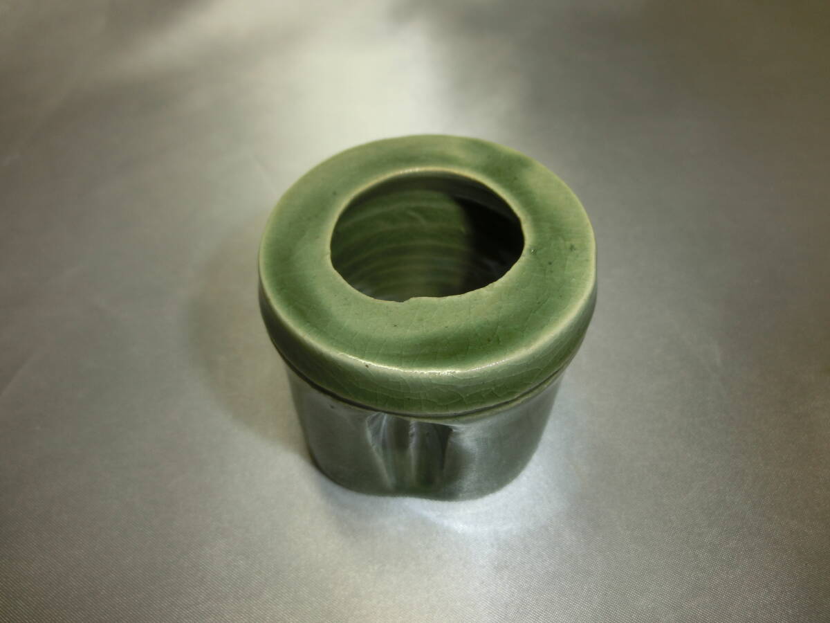 青竹のように、青磁蓋置で形はもとより、上面の薄い部分の仕上げは見事に竹を写しておられます。