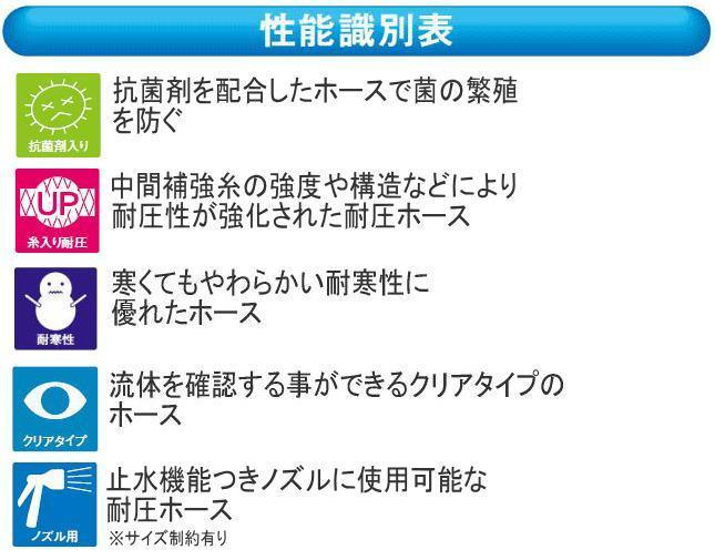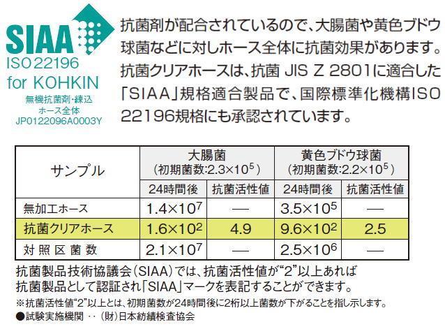 | 安全・安心な「SIAA」適合品。 雑菌の繁殖を抑える抗菌耐圧ホースです。 | ||||||||||