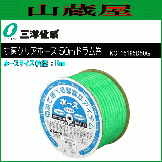 | 抗菌クリアホース [KC-15195D50G] 50mドラム巻き/サイズ:15mm(内径)/グリーン | ||