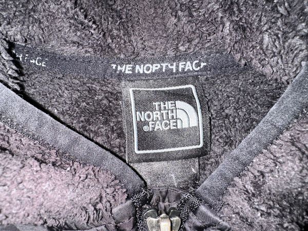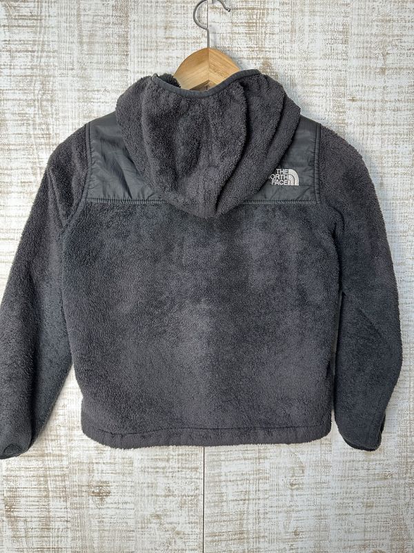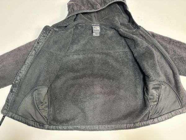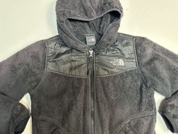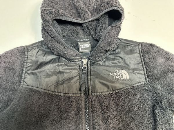 ●US USED KIDS US古着 THE NORTH FACE ノースフェイス フリース フード ジャンパー 上着 パーカー ロゴ刺繍 ブラック黒【S】