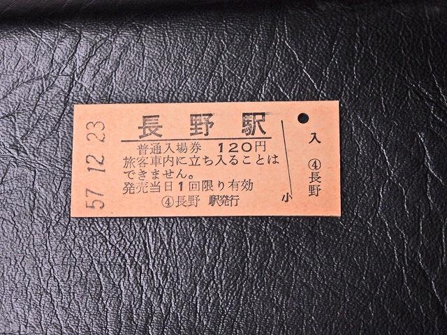 【切符】硬券 国鉄 長野駅発行 入場券 120 円 改札鋏パンチなし 昭和57年