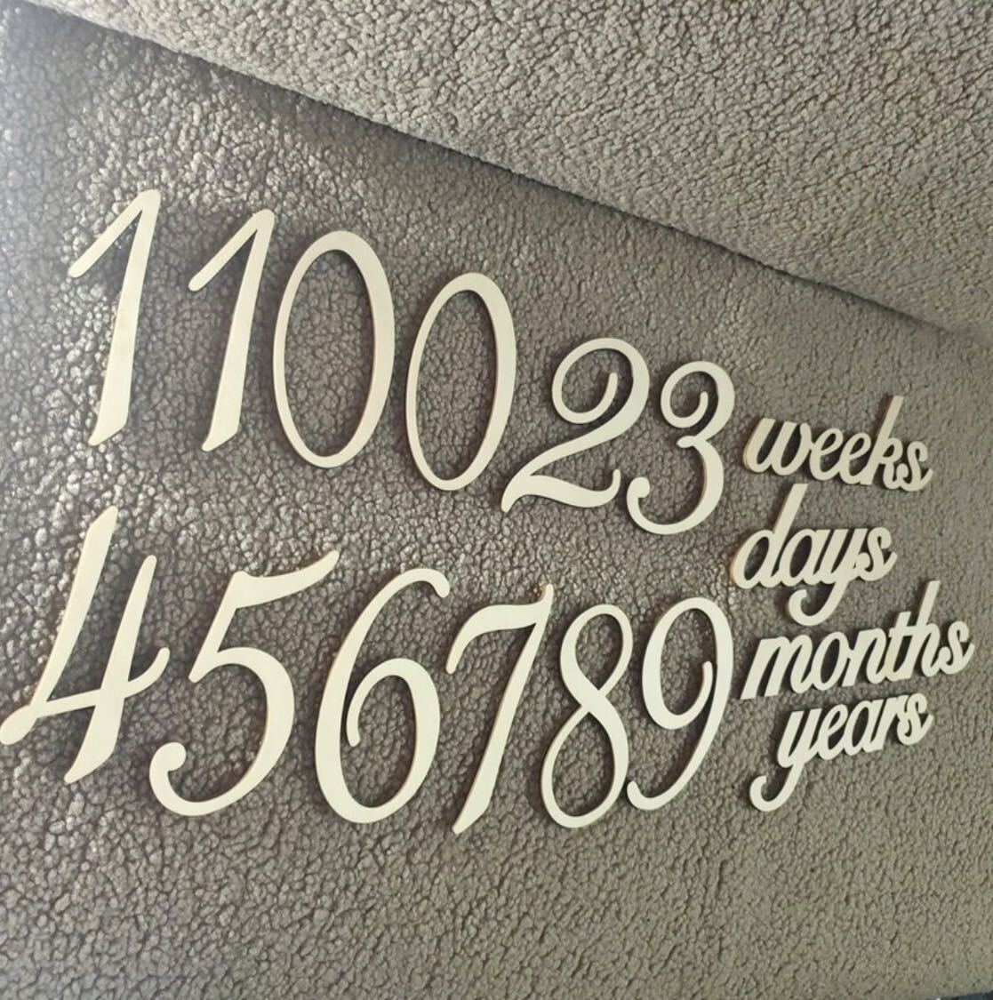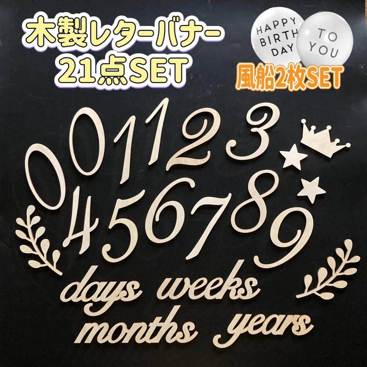 赤ちゃんの月齢フォトや誕生日、マタニティフォトなどに使用できる木製レターバナーです。すべての数字がそろっているので誕生日や記念日に使えます。