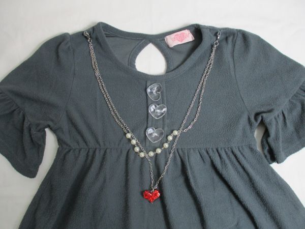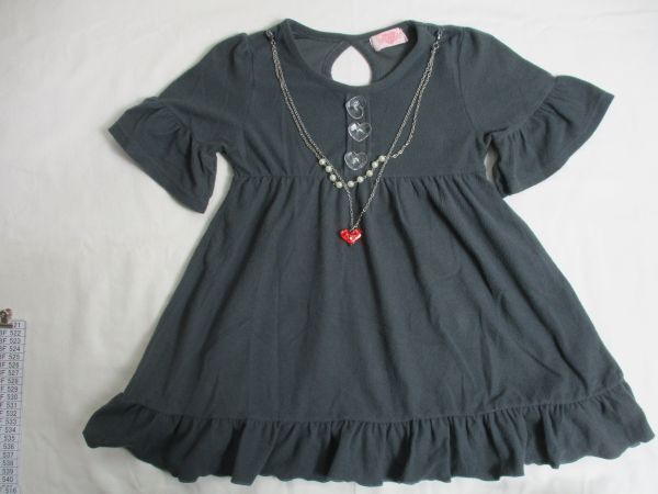 | BF516【BEGUM・べガム】ハート偽ボタン ストレッチ 半袖 ワンピース カットソー 訳有 女児 淡黒 120 | |