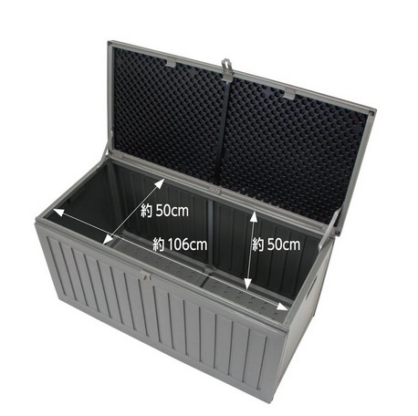 ・組み立て式の大型収納コンテナ。 ・工具不要で簡単組立(安全の為軍手などの手袋をご用意ください)。 ・組み立て時間約15分(目安の時間になります)。 ・別売の南京錠などで施錠することができます。 ・天板荷重約80kg(静止荷重) ・説明書は商品の間に入っています。 重量 :5.6kg サイズ:約幅109×奥行51.3×高さ54.7cm ※ お客様組立品になります ※ 天板荷重が約80kgありますが、安全の為上に乗ったりしないでください。 ※ 組立構造のため、大雨等の冠水による商品内への浸水は防ぐことができません。 | ||