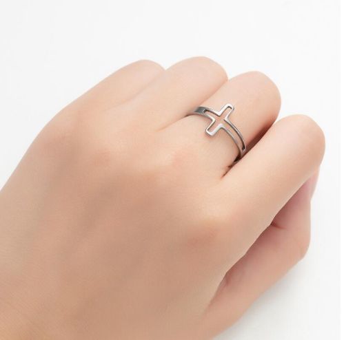クロスリング シルバー 16号 ステンレス おしゃれ 指輪 十字架 クロス リング 透かし 型抜き