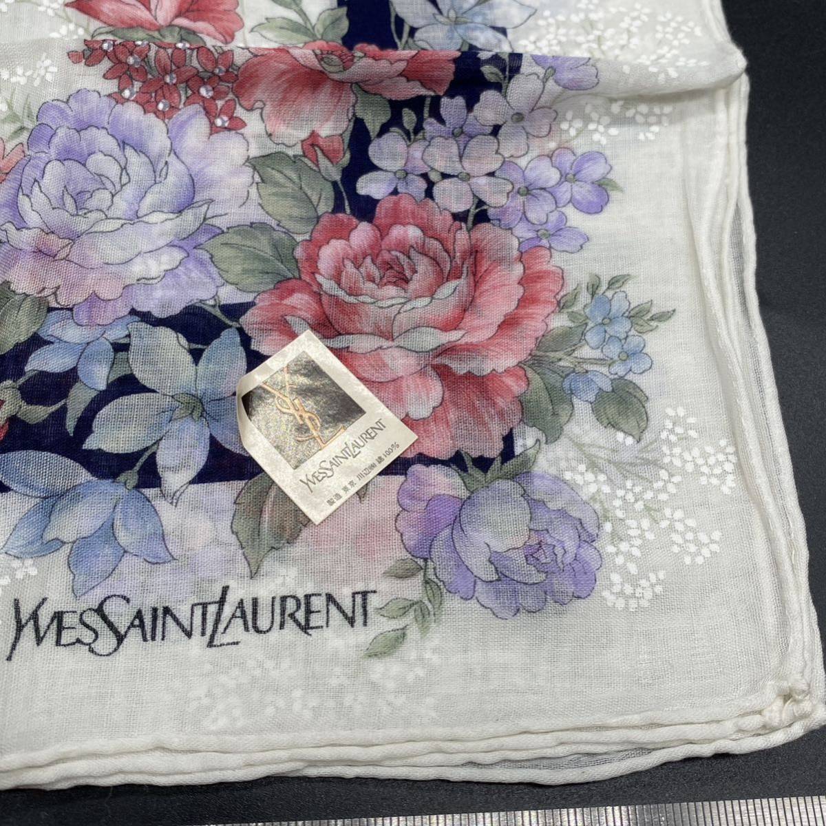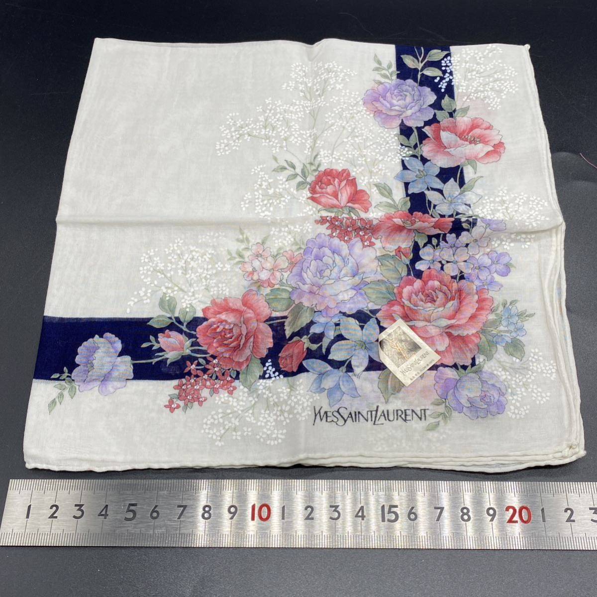 Yves Saint Laurent イブサンローラン イヴサンローラン ハンカチ 花柄 ネイビーライン no.34
