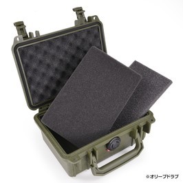 ペリカンの防水ケース 1120です。コポリマーポリプロピレンを使用した耐衝撃ボディは防水シール機能を備え、水やホコリからケース内のアイテムを保護します。ケース内部にはブロックウレタンが備えつけられており、内容物を固定保護。ケース内部と外気圧のバランスを自動調整できる自動気圧調整バルブ付き。パドロックホールも付いていますので、鍵などをつけることが可能。