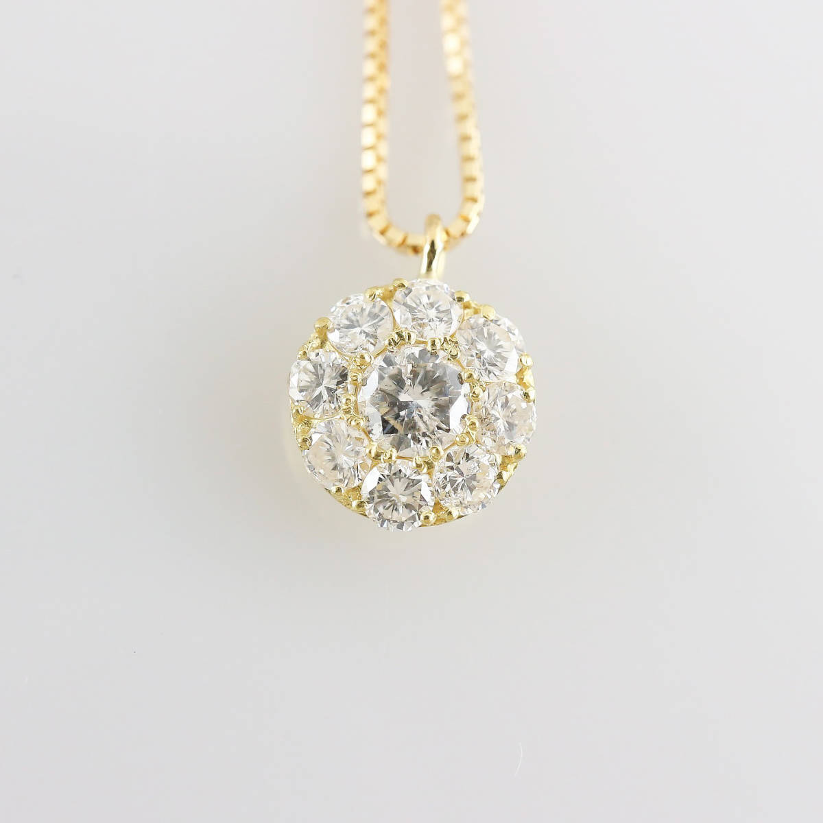【コメント】:テリのあるメレーダイヤをあしらったパヴェセッティングネックレス。クラリティはSI2〜I1程度ですがカットが良いので非常によく輝きます。