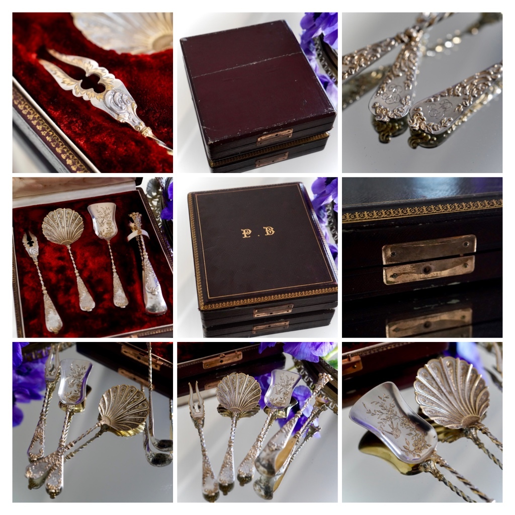極希少★美品★フランスアンティークシルバー 銀無垢★純銀 Henry Gabert作 アンリ ガベール サービング カトラリー セット