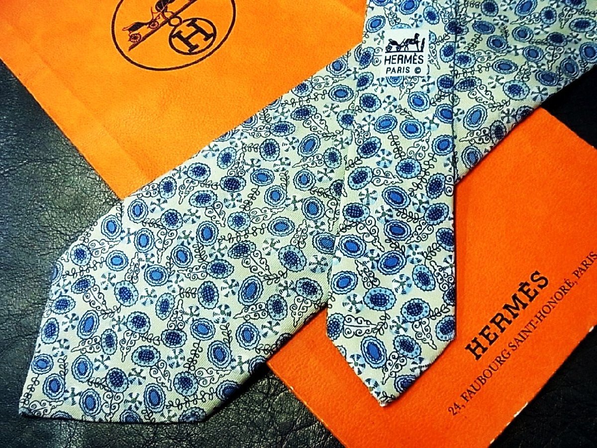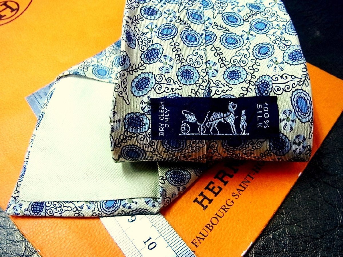 ★並品★4R01801【HERMES】エルメス「花 植物 柄」ネクタイ