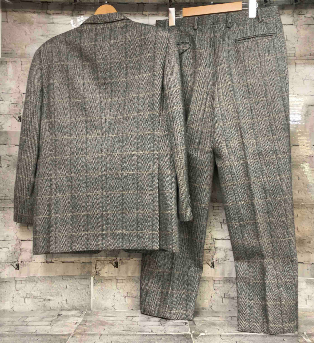| 80s 90s Burberrys バーバリー テーラードジャケット ツイード セットアップ ネーム入り94-82-175A6 グレー ・襟汚れあり ・袖周り変色あり ・脇に変色あり ・ネームあり ・裾にシミあり サイズ(単位:センチメートル) ジャケット 着丈:約75 袖丈:約60 身幅:約53 肩幅:約44 スラックス 股上:約29 股下:約73 ウエスト:約86 ヒップ:約50 わたり幅:約33 裾幅:約22 |