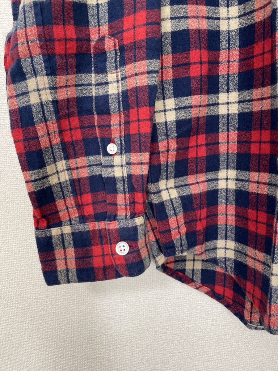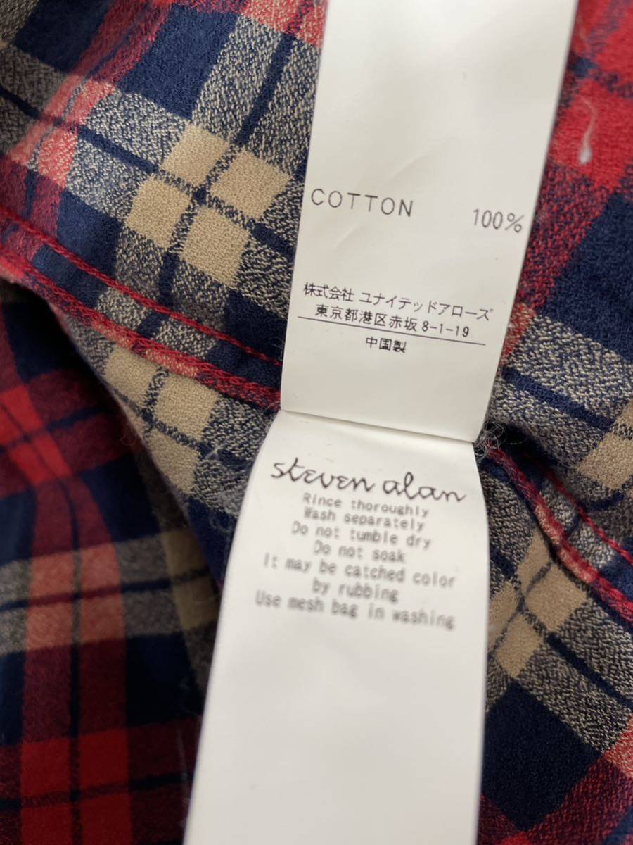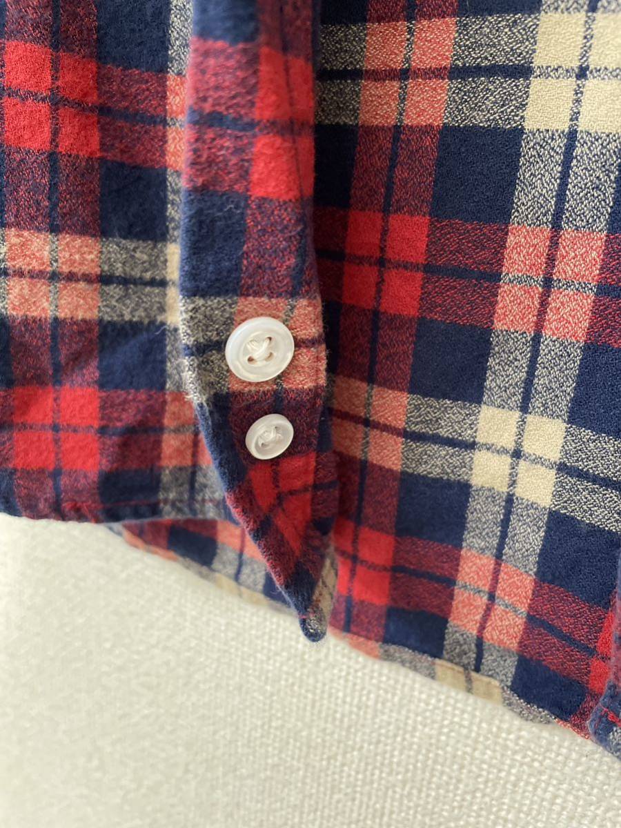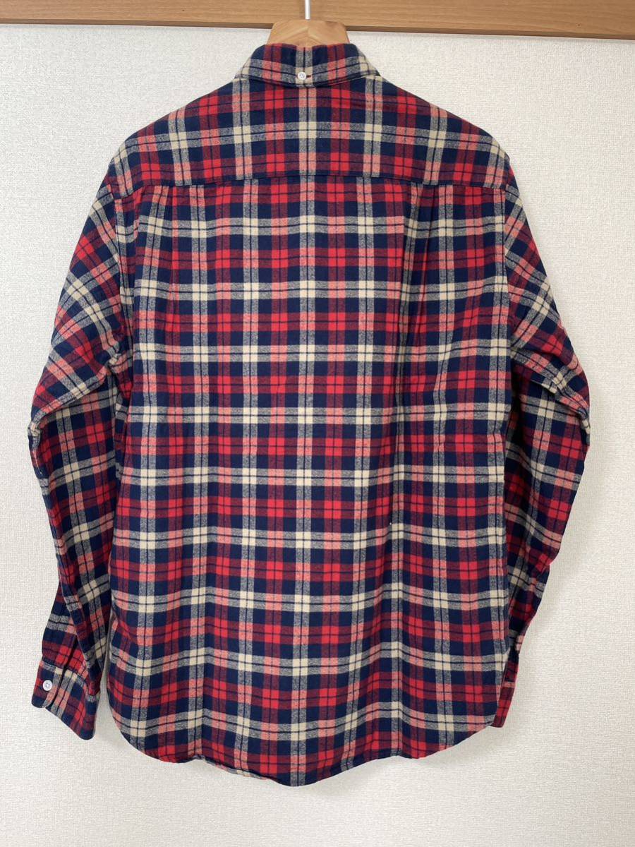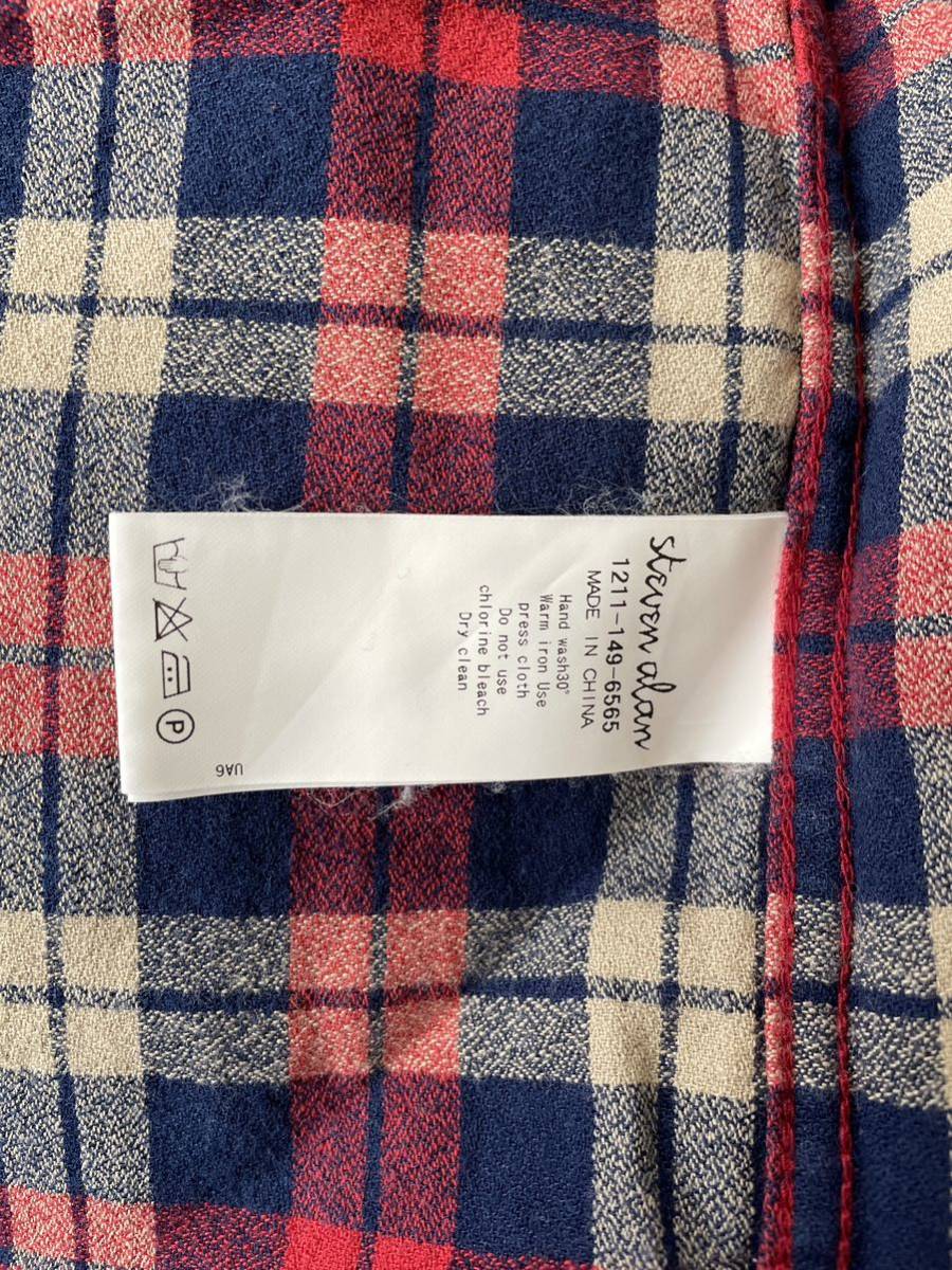 スティーブンアランのコットンボタンダウンチェックシャツです。汚れやダメージの無い、美中古品です。サイズはLで、おおよその寸法が 肩幅44 身幅55 着丈73 肩からの袖丈61 といったところです。落ち着いた色味のチェックシャツです。少し薄手で軽めのコットンフランネル素材をしています。使い勝手の良い一枚だと思います。お好きな方、この機会にいかがでしょうか?よろしくお願いいたします。