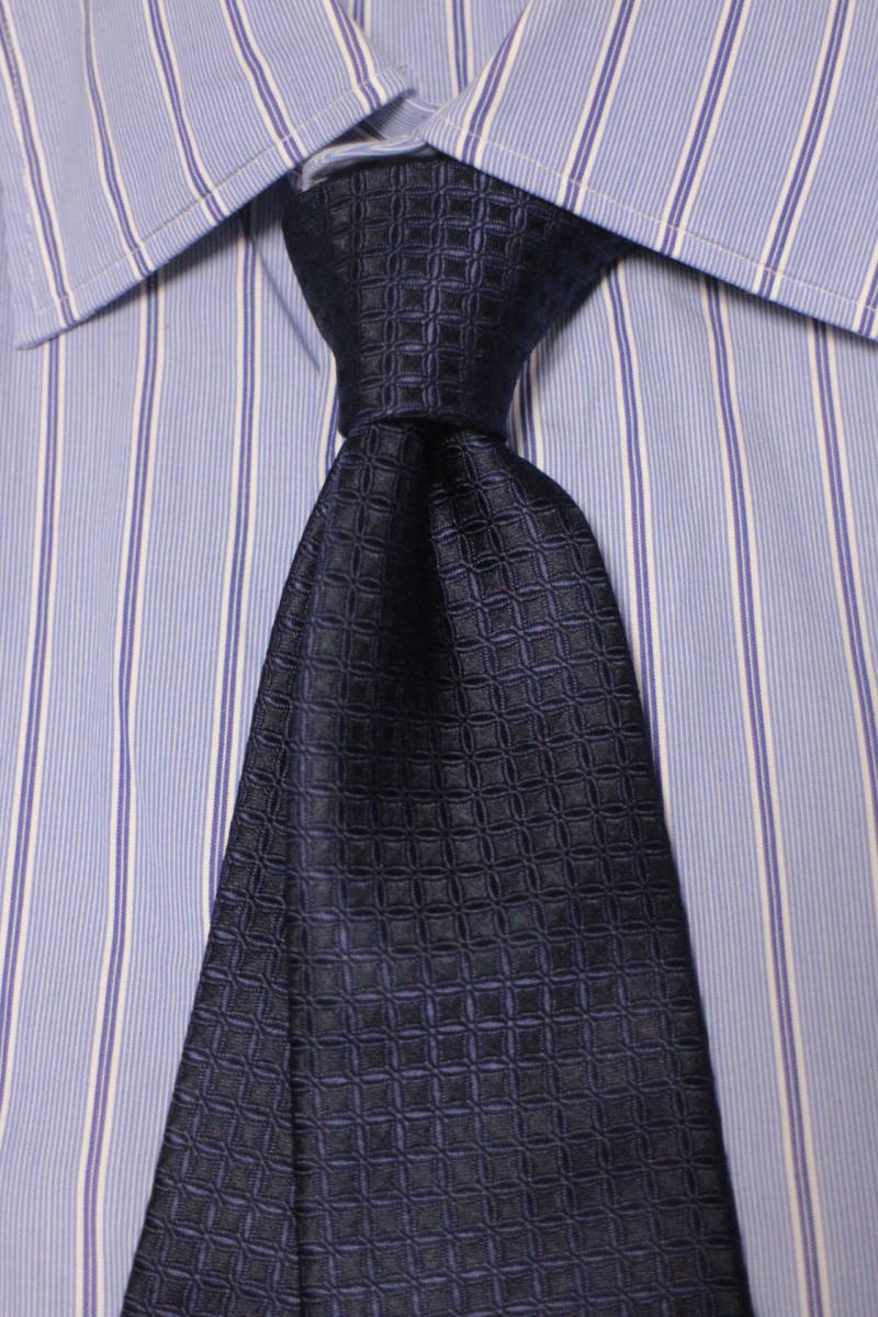 タケオキクチ新品ネクタイ超美麗艶ネイビー茄子紺ソリッド極上西陣織七宝柄フルハンドメイド限定プロダクトノーツジャパン